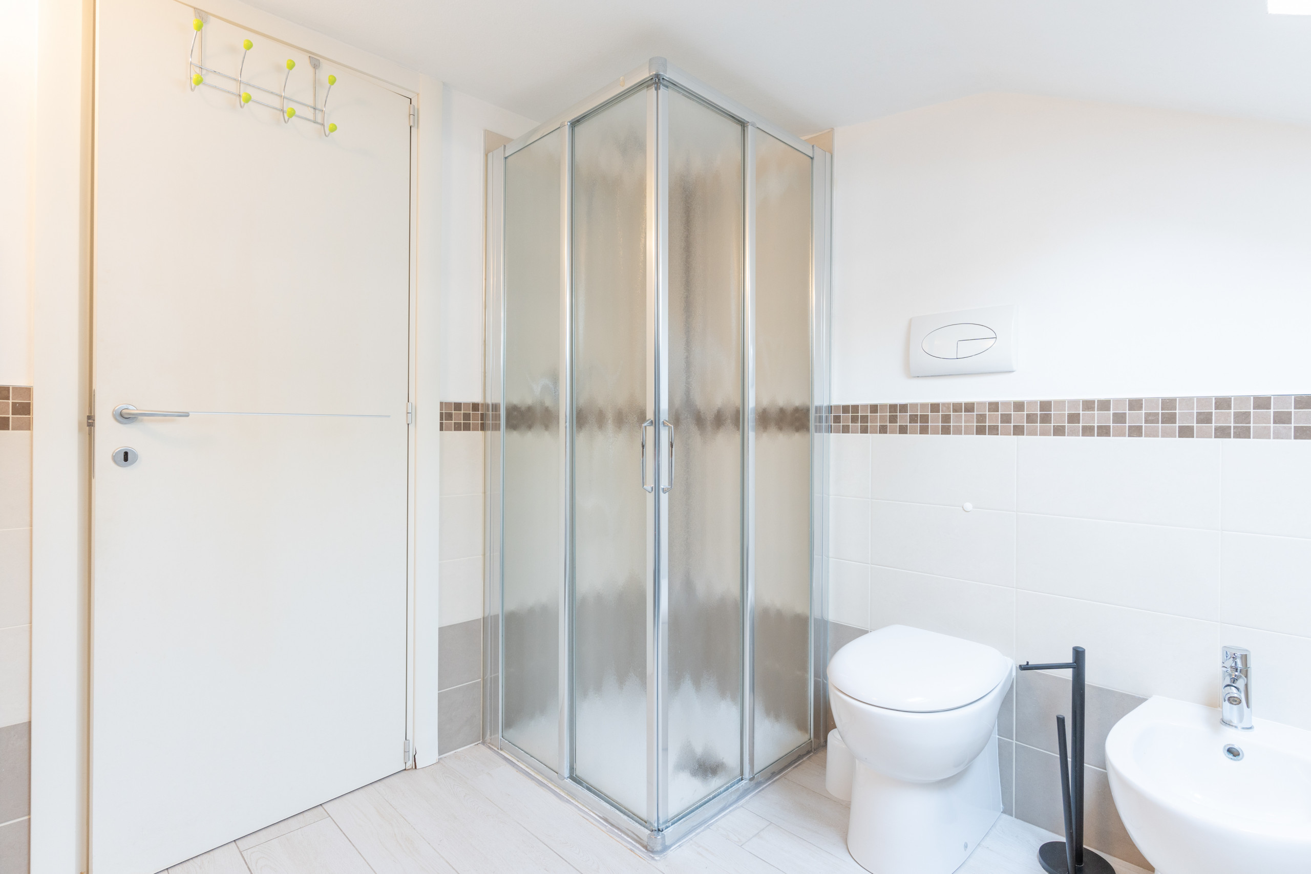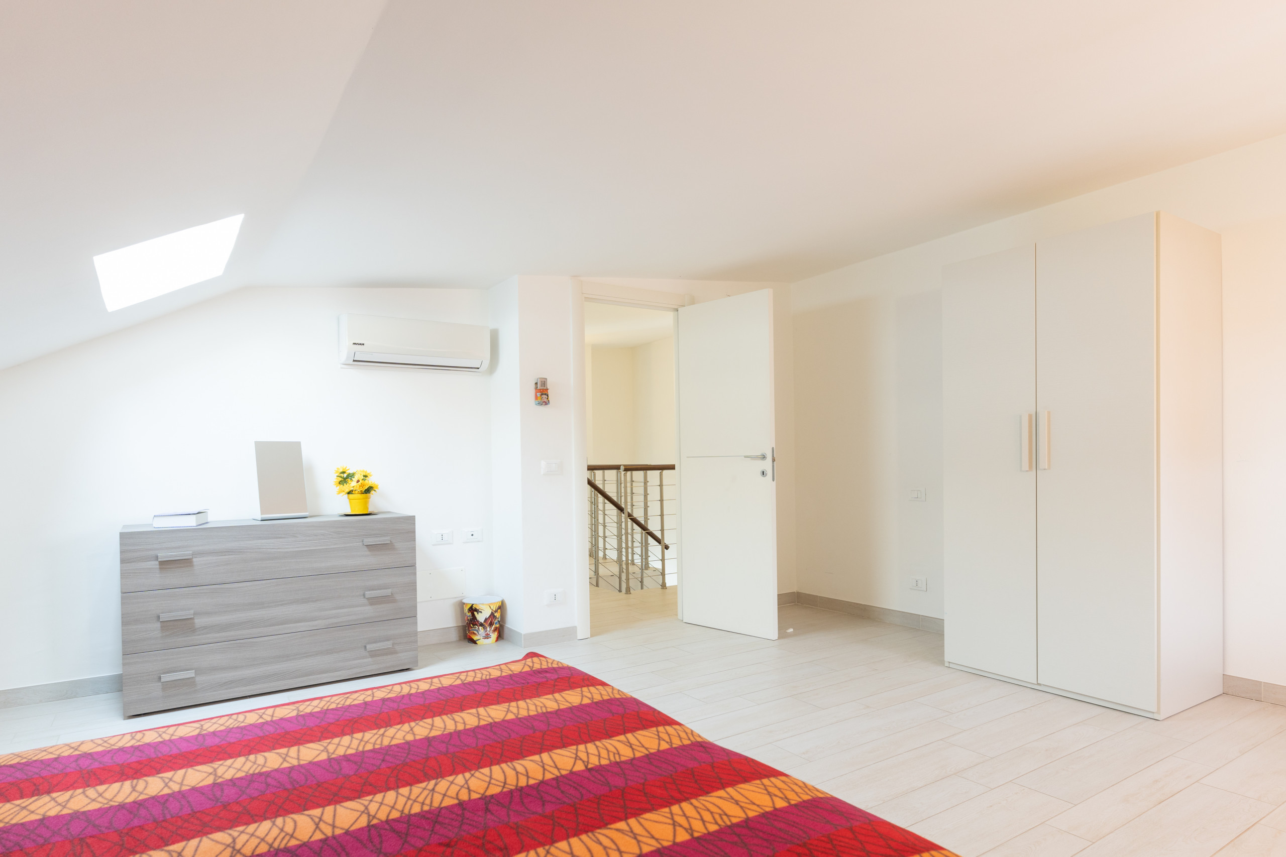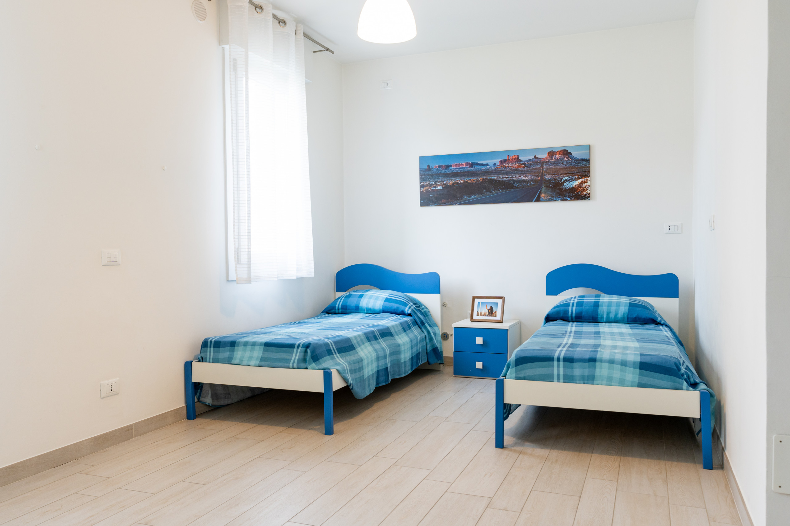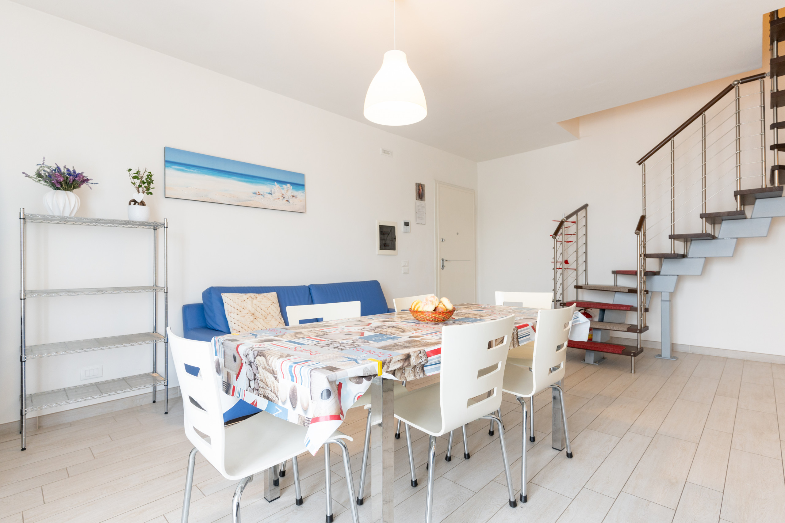 NUR FÜR FAMILIEN - Renovierter Vierzimmerwohnung im ersten Stock, in zwei Etagen geteilt. Im ersten Stock gibt es ein Wohnzimmer mit Kochnische (mit Kühlschrank, Ofen und Induktionskochplatten ausgestattet), Sofa und Fernseher, ein gefenstertes Badezimmer mit Duschkabine, ein Schlafzimmer mit zwei Einzelbetten (ohne Tür, aber mit einem Verdunklungszelt vom Wohnzimmer getrennt), kleine Terrasse. In der Mansarde gibt es zwei Doppelschlafzimmer, ein zweites gefensteres Badezimmer mit Duschkabine und Waschmaschine, Klimaanlage (einen Split in jedem Schlafzimmer). Ein ungedeckter Parkplatz steht zur Verfügung. Kein Strandplatz ist zur Verfügung.