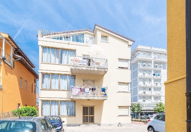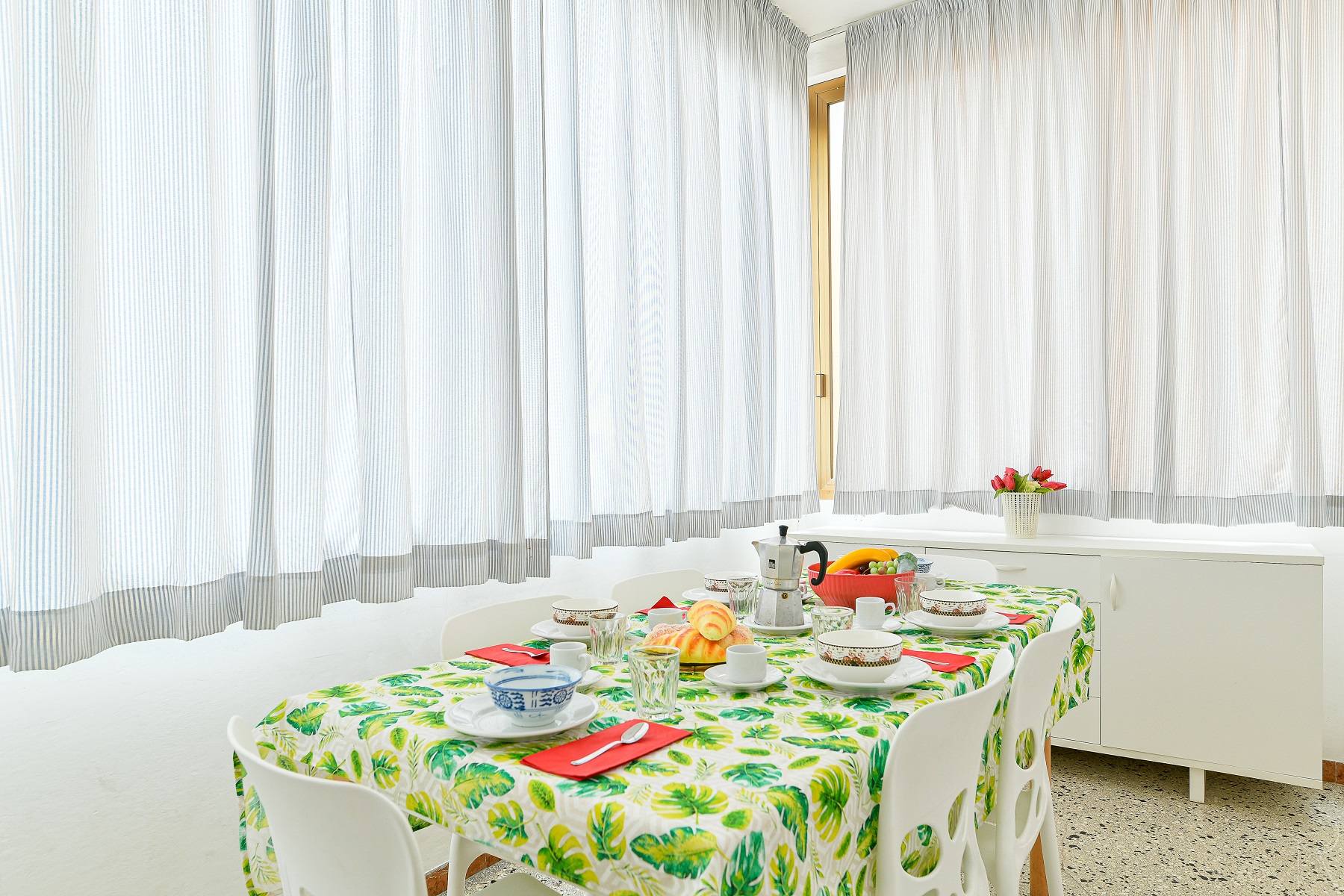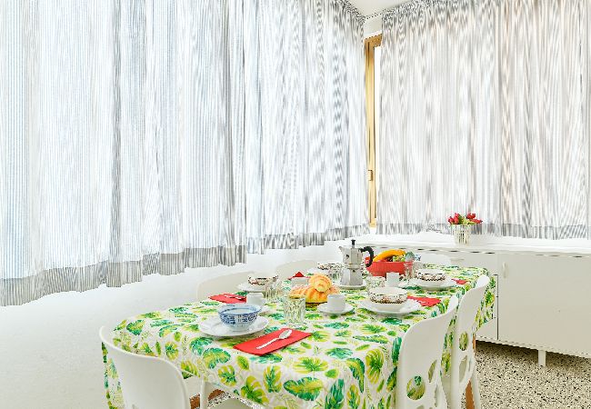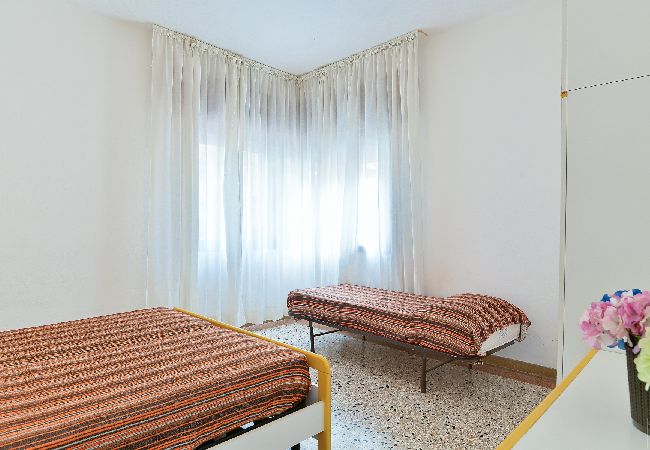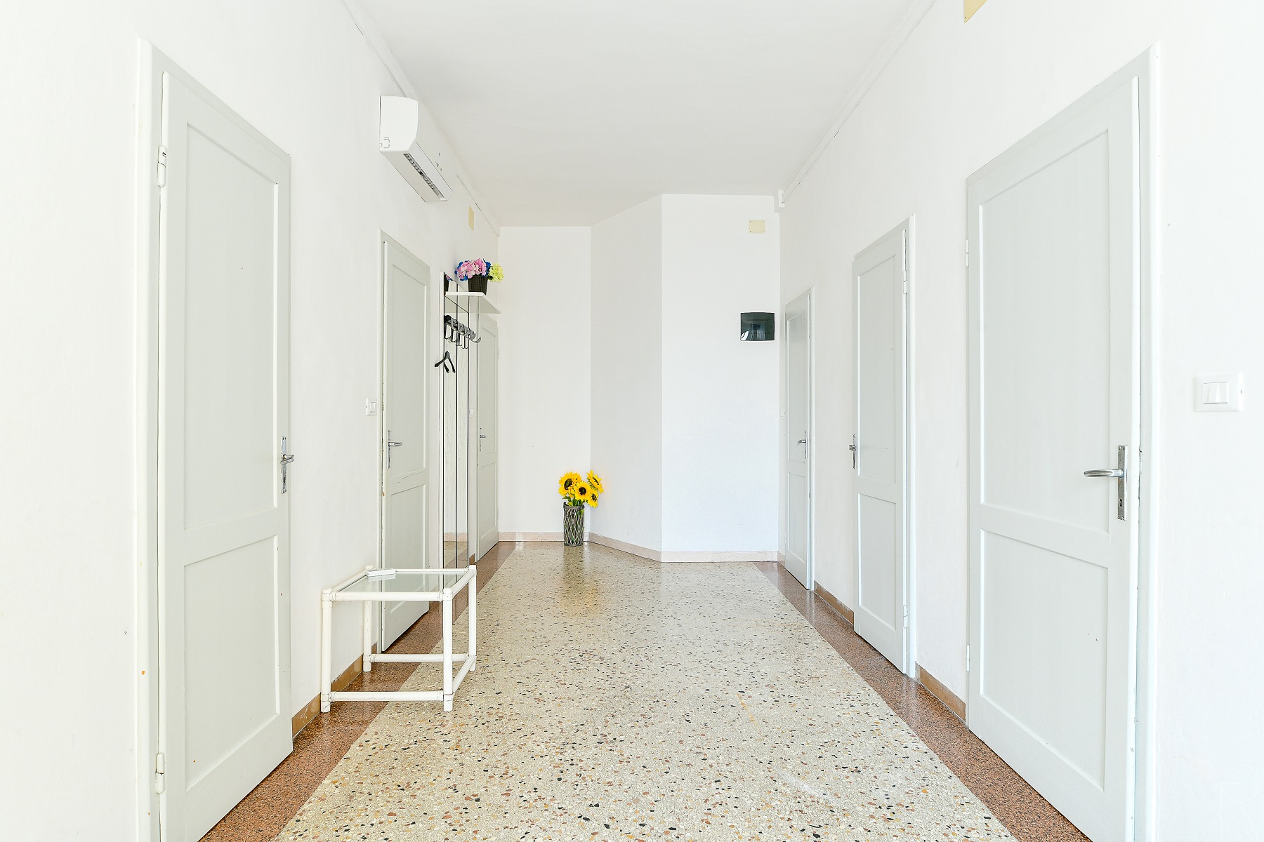 4 Raum Wohnung mit 8 Betten. Klimatisierte 4-Raum-Wohnung im Erdgeschoss ohne Terrasse. Sie verfuegt ueber 1 Schlafzimmer mit Doppelbett, 1 Schlafzimmer mit Doppelbett und Einzelbett, 1 Schlafzimmer mit 2 Einzelbetten, Wohn/Esszimmer mit Küchenzeile. Ein komplettes Badezimmer mit Duschkabine und 1 weiteres Badezimmer nur mit Dusche ohne Toilette. Das Haus "Zenith" ist eine Villa nur 10 Meter vom Strand entfernt in Lido di Jesolo in ruhiger aber centraler Lage in der Naehe der Piazza Trieste umgeben von Restaurants, Bars und Geschaeften. Kleiner Privatstrand vor dem Haus. Die Villa besteht aus 8 Wohnungen ueber 3 Stockwerken (kein LIft), einige davon mit grossen Balkonen zum Meer. Alle mit TV, Kima und Waschmaschine. Die Wohnungen mit 3 Schlaefzimmern verfuegen ueber 2 Baeder. Strandservice gegen Gebuehr (obligatorisch) nicht im Preis inbegriffen. Numerierter Parkplatz beim Haus.