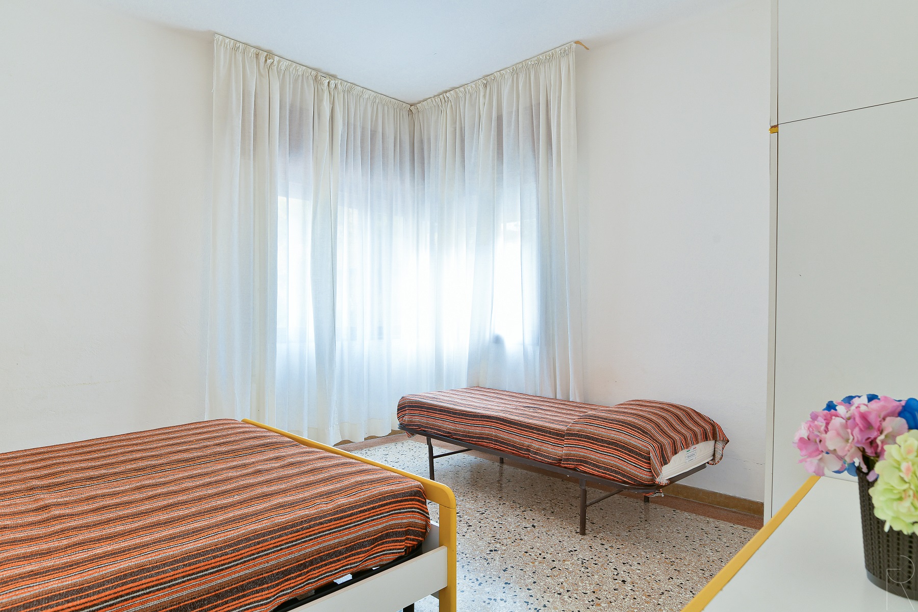 4 Raum Wohnung mit 6 Betten und einer Doppelschlafcouch. Wohnung im Erdgeschoss mit 1 Doppelzimmer,1 Doppelzimmer, 1 Schlafzimmer mit Stockbett, Wohn - Esszimmer mit Kochecke und Doppelsofabett, Badezimmer. "Villa Norma" ist eine eingezaeunte Villa, 70 Meter vom Strand entfernt, in zentraler, ruhiger Lage in Lido di Jesolo zwischen der Piazza Brescia und der Piazza Trieste. Villa Norma bietet 4 klimatisierte 4-Raum-Wohnungen alle mit TV und Waschmaschine, im 1.Stock mit Balkon. Strandplatz gegen Gebuehr (obligatorisch) nicht im Preis inbegriffen. 1 Autostellplatz pr Wohnung auf dem eingezaeunten Parkplatz.
