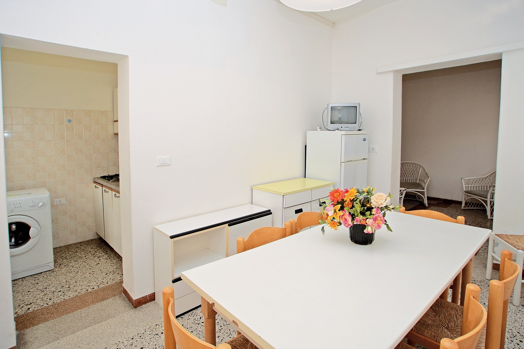 3 Raum Wohnung mit 6 Betten. Bestehend aus 1 Schlafzimmer mit Doppelbett und Stockbett, 1 Schlafzimmer mit Doppelbett. Wohnzimmer mit Küchenzeile. 1 Badezimmer. Ohne Balkon. Das Haus "Zenith" ist eine Villa nur 10 Meter vom Strand entfernt in Lido di Jesolo in ruhiger aber centraler Lage in der Naehe der Piazza Trieste umgeben von Restaurants, Bars und Geschaeften. Kleiner Privatstrand vor dem Haus. Die Villa besteht aus 8 Wohnungen ueber 3 Stockwerken (kein LIft), einige davon mit grossen Balkonen zum Meer. Alle mit TV, Kima und Waschmaschine. Die Wohnungen mit 3 Schlaefzimmern verfuegen ueber 2 Baeder. Strandservice gegen Gebuehr (obligatorisch) nicht im Preis inbegriffen. Numerierter Parkplatz beim Haus.