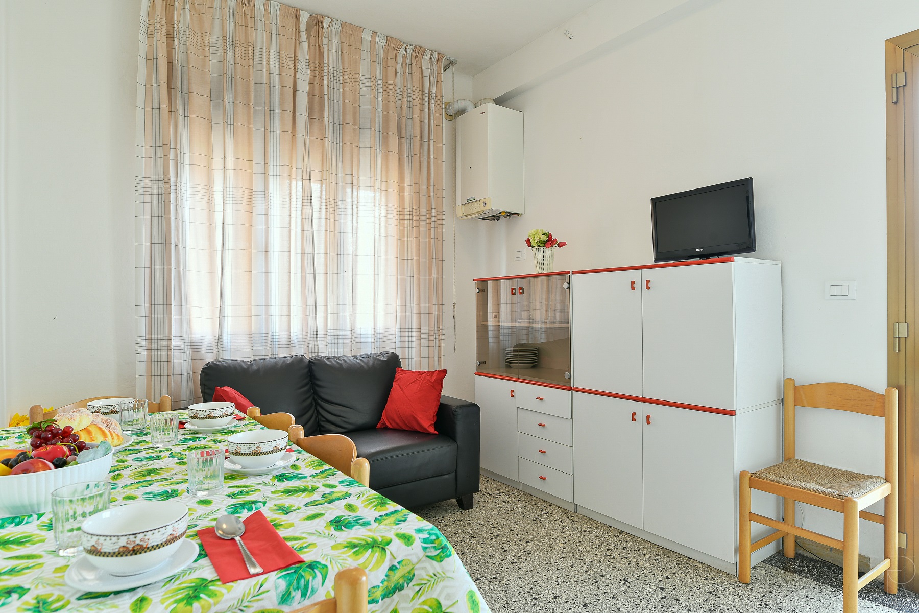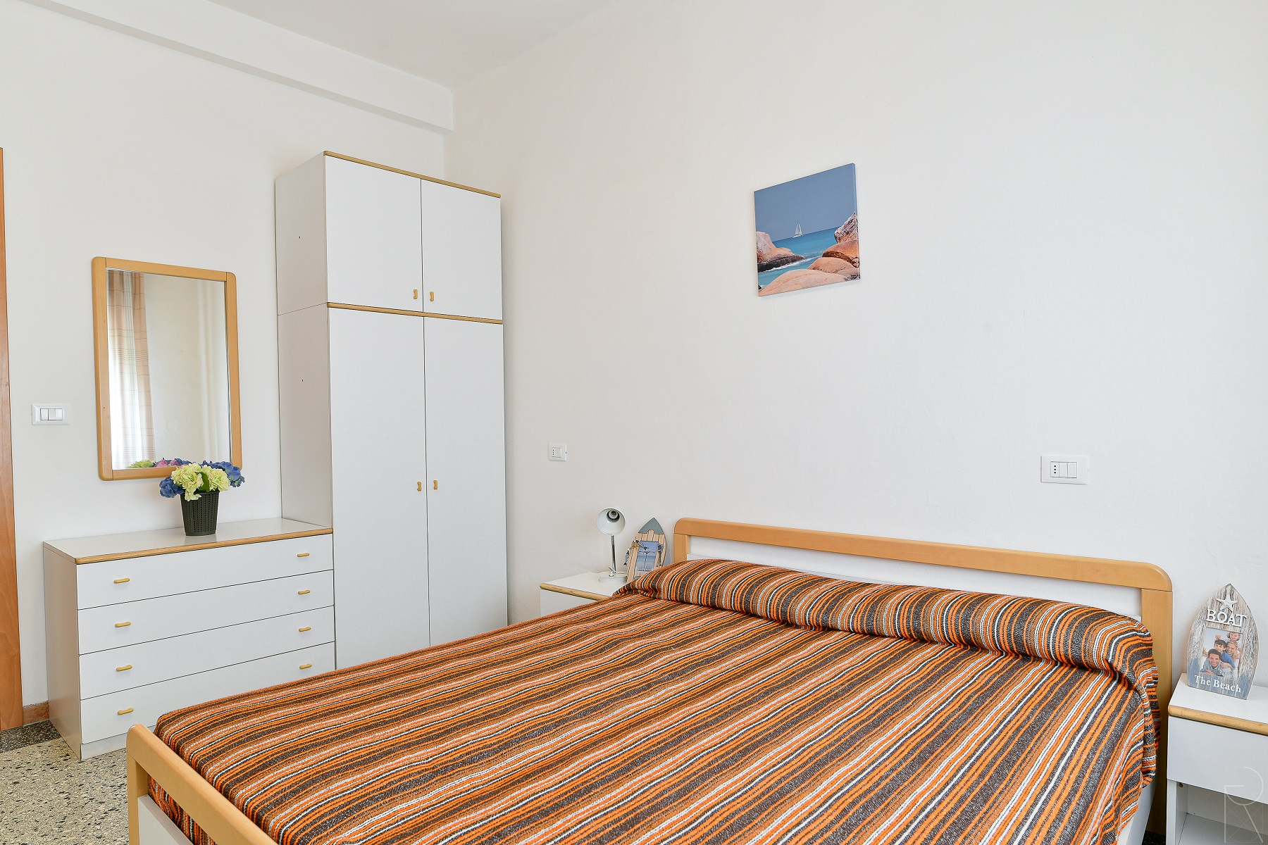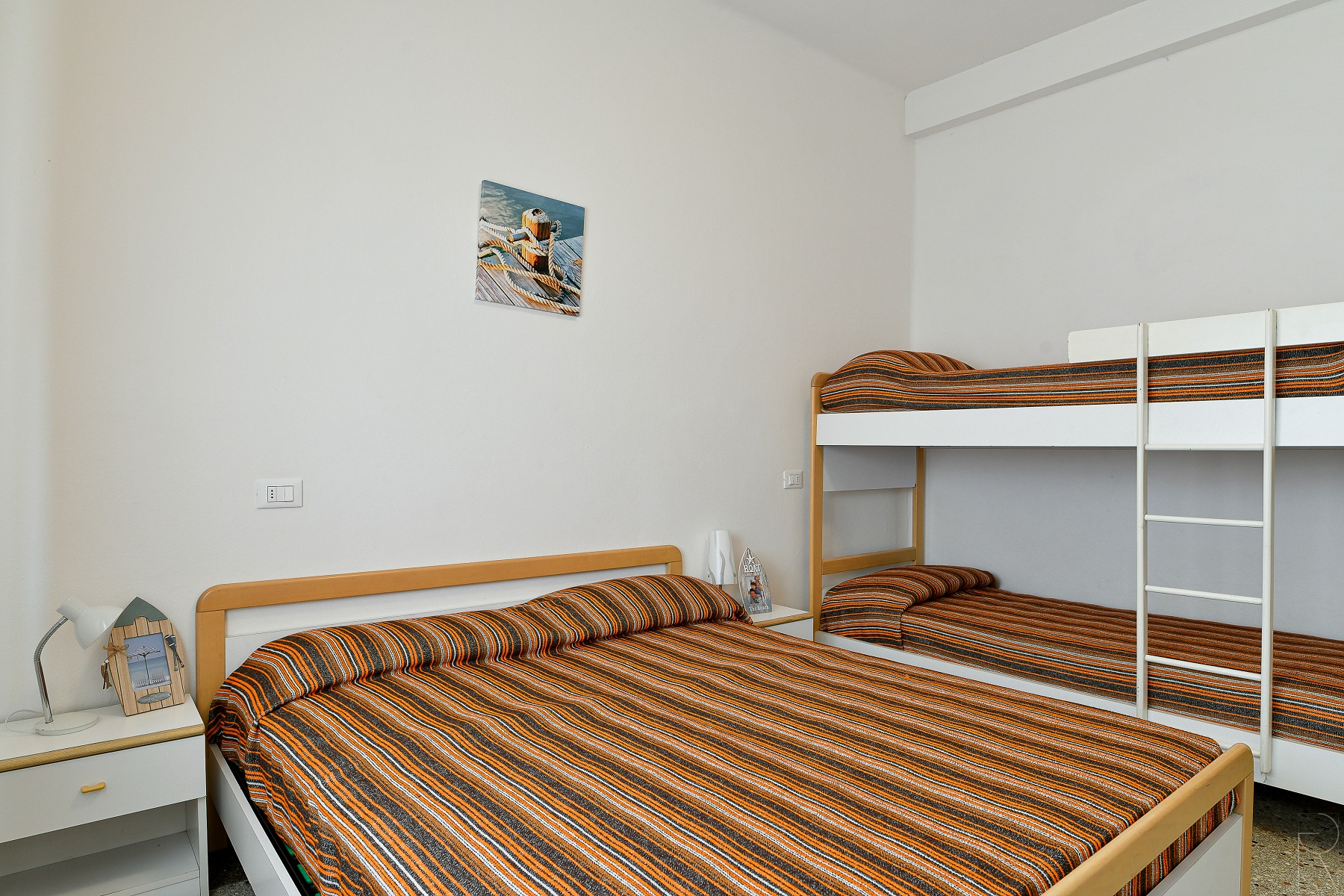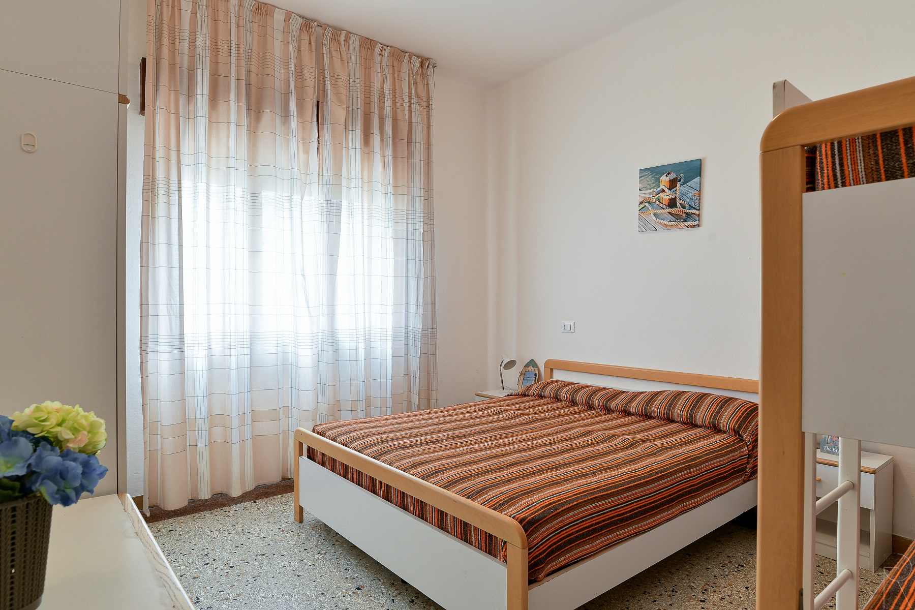 3-Raum-Wohnung mit 6 Betten, ohne Balkon im 2.Stock. Bietet 1 Schlafzimmer mit Doppelbett + Stockbett, 1 Schlafzimmer mit Doppelbett. Wohn/Esszimmer mit 1 Doppelschlafcouch, Küchenzeile. Badezimmer. Das Haus "Zenith" ist eine Villa nur 10 Meter vom Strand entfernt in Lido di Jesolo in ruhiger aber centraler Lage in der Naehe der Piazza Trieste umgeben von Restaurants, Bars und Geschaeften. Kleiner Privatstrand vor dem Haus. Die Villa besteht aus 8 Wohnungen ueber 3 Stockwerken (kein LIft), einige davon mit grossen Balkonen zum Meer. Alle mit TV, Kima und Waschmaschine. Die Wohnungen mit 3 Schlaefzimmern verfuegen ueber 2 Baeder. Strandservice gegen Gebuehr (obligatorisch) nicht im Preis inbegriffen. Numerierter Parkplatz beim Haus.