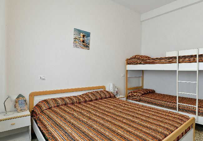 4 Raum Wohnung mit 6 Betten und einer Doppelschlafcouch. Wohnung im Erdgeschoss mit 1 Doppelzimmer,1 Doppelzimmer, 1 Schlafzimmer mit Stockbett, Wohn - Esszimmer mit Kochecke und Doppelsofabett, Badezimmer. "Villa Norma" ist eine eingezaeunte Villa, 70 Meter vom Strand entfernt, in zentraler, ruhiger Lage in Lido di Jesolo zwischen der Piazza Brescia und der Piazza Trieste. Villa Norma bietet 4 klimatisierte 4-Raum-Wohnungen alle mit TV und Waschmaschine, im 1.Stock mit Balkon. Strandplatz gegen Gebuehr (obligatorisch) nicht im Preis inbegriffen. 1 Autostellplatz pr Wohnung auf dem eingezaeunten Parkplatz.