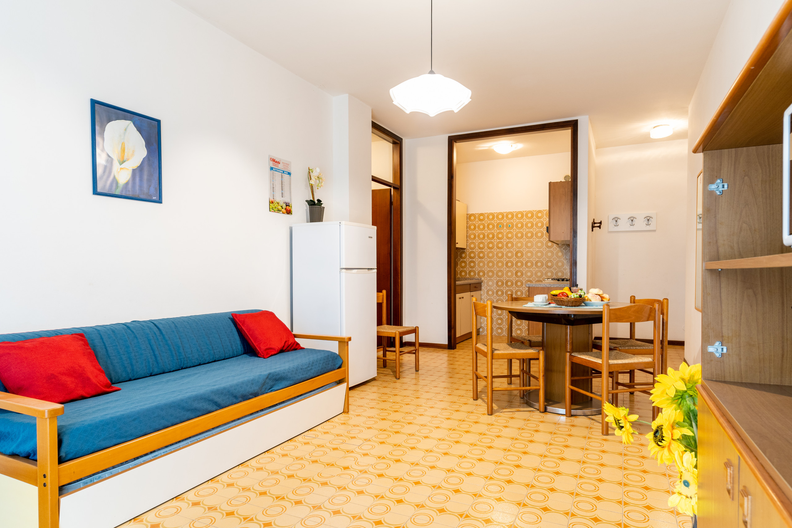 Die Zweizimmerwohnungen der Ferienanlage, die sich zwischen dem 1. und 4. Stock befinden, bieten 43 qm an gemütlichem und funktionalem Wohnraum. Dank der Balkone mit verschiedenen Ausrichtungen können Sie bezaubernde Ausblicke genießen.