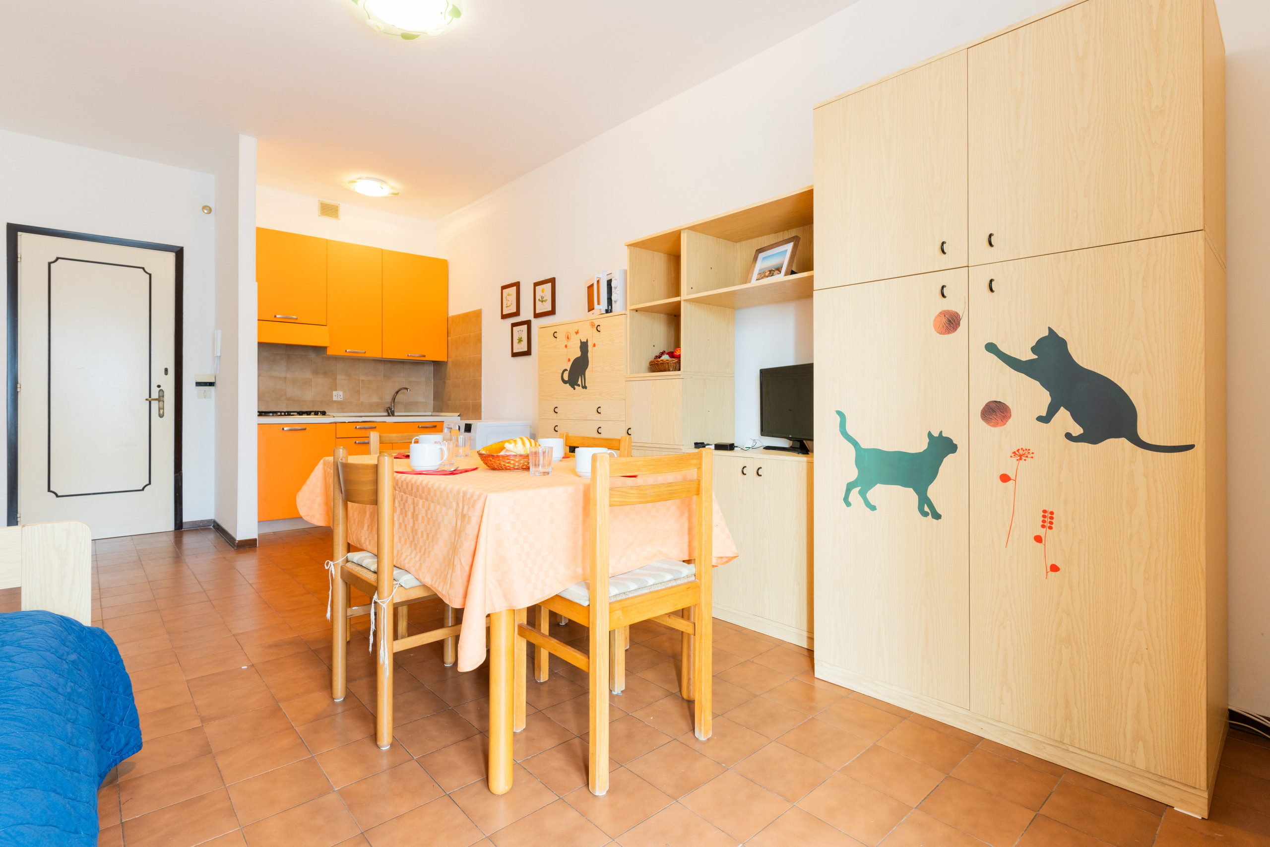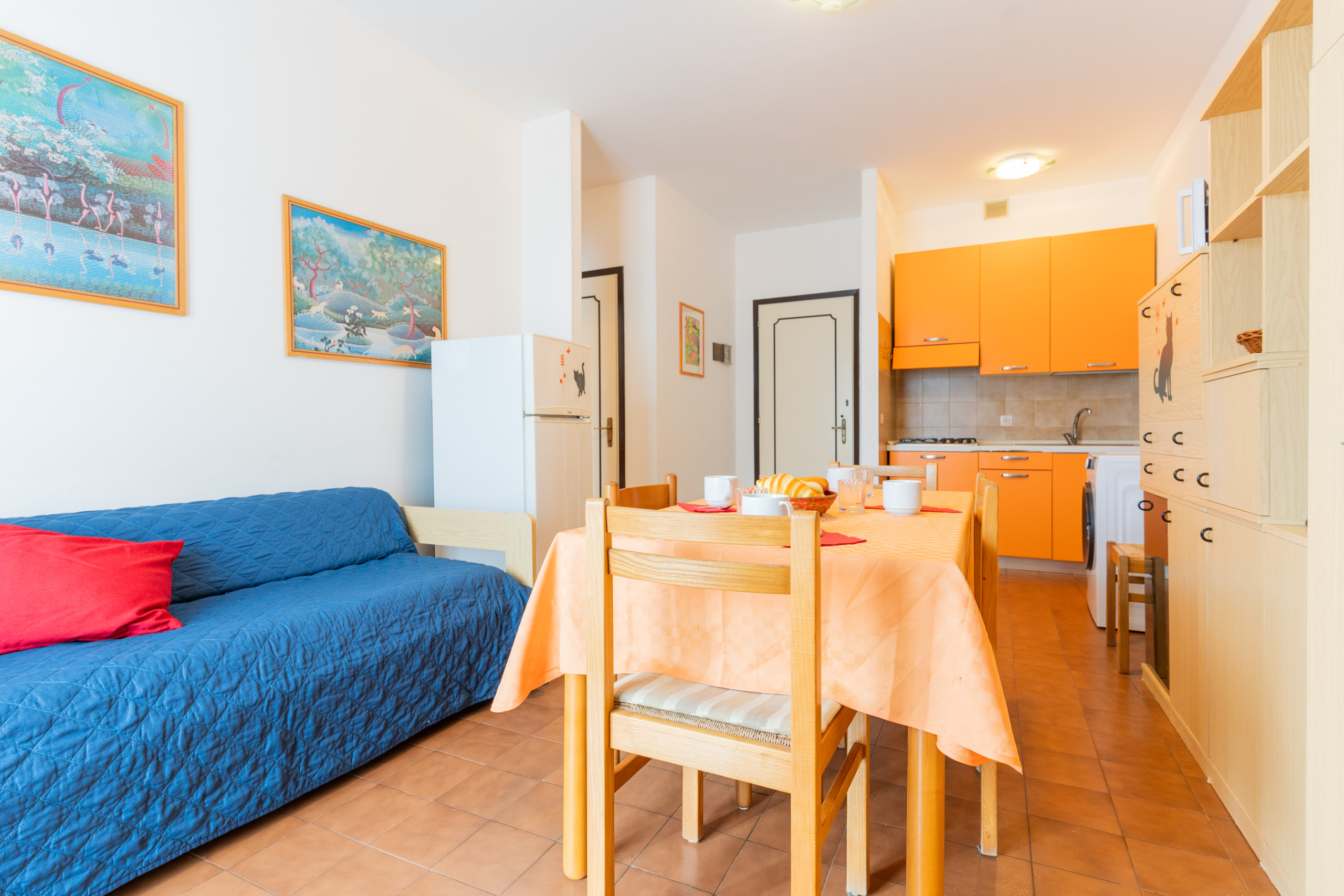 Die Zweizimmerwohnungen der Ferienanlage, die sich zwischen dem 4. und 5. Stock befinden, bieten 42 qm an gemütlichem und funktionalem Wohnraum. Dank der Balkone mit verschiedenen Ausrichtungen können Sie bezaubernde Ausblicke genießen.
