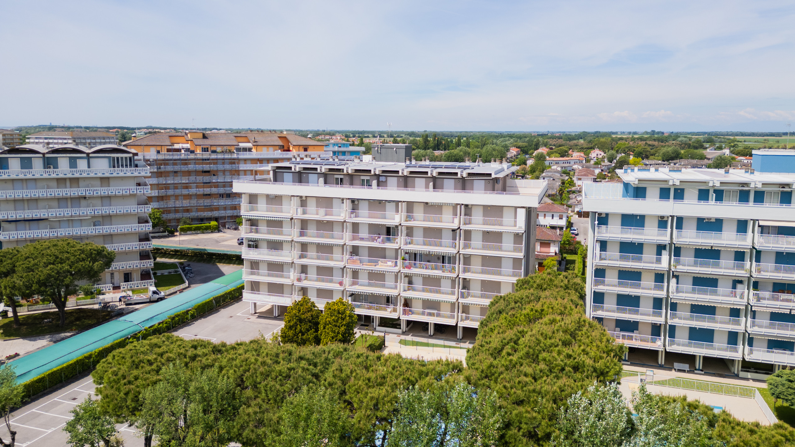 Jede Wohnung verfügt über eine exklusive Terrasse, Klimaanlage, Fernseher und einen privaten Parkplatz, um einen sorgenfreien Aufenthalt zu gewährleisten.