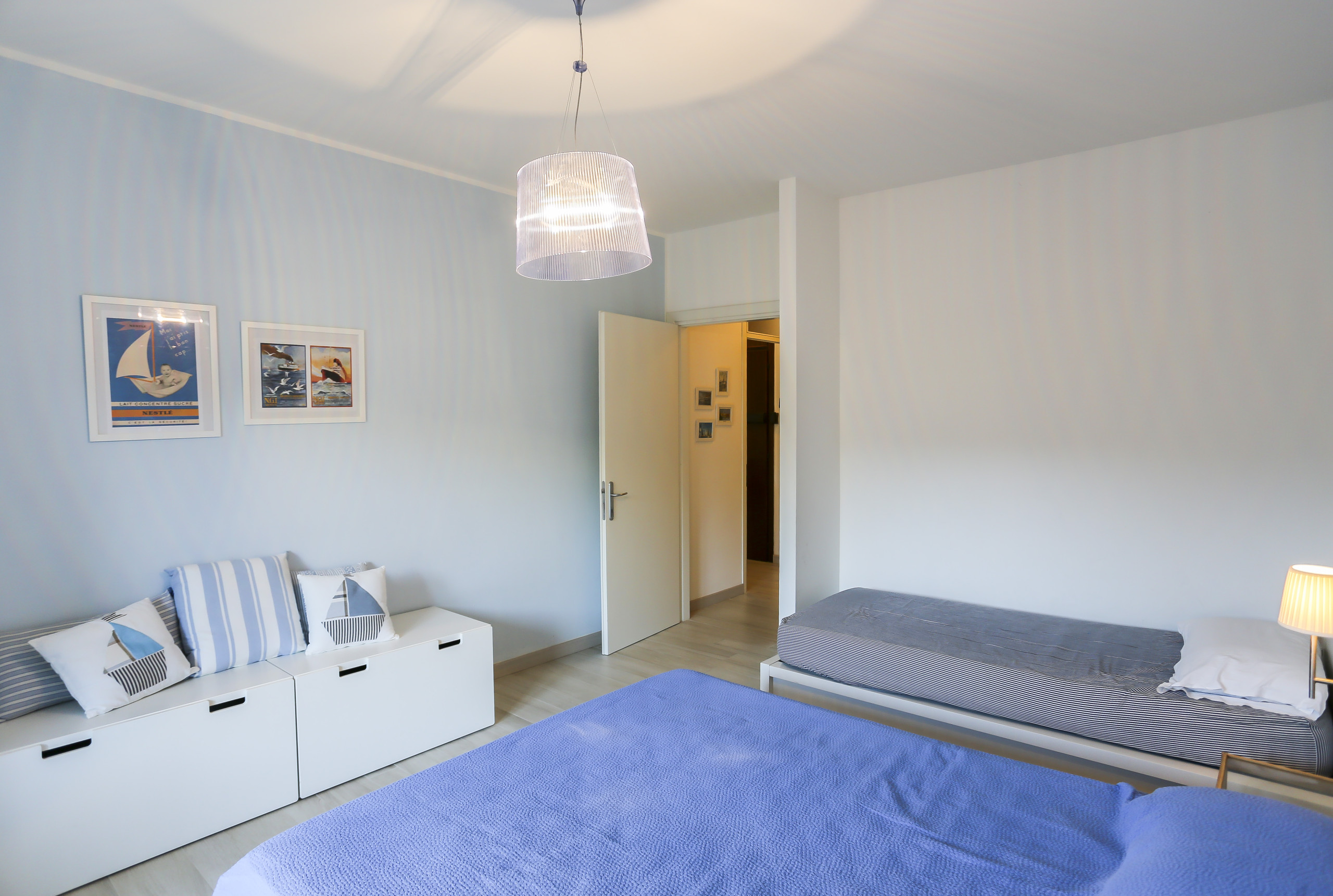 - Ein Schlafzimmer mit Doppelbett und Einzelbett.