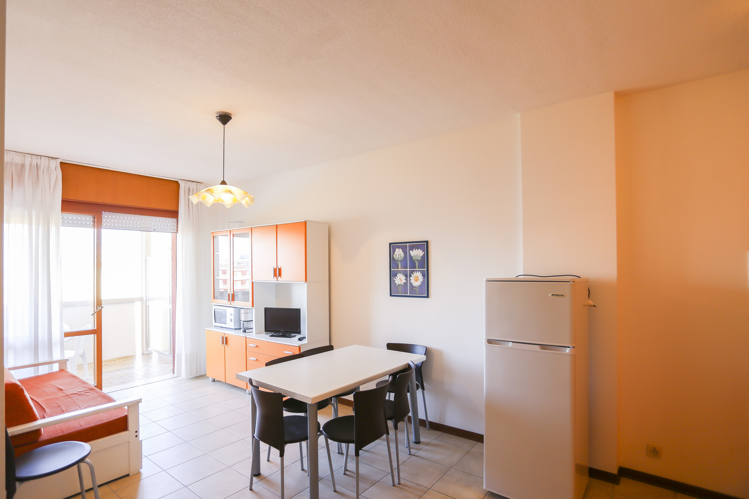 Die 3-Zimmer-Wohnungen der Residenz, die sich zwischen dem 4. und 6. Stock befinden, bieten 55 qm an gemütlichem und funktionalem Wohnraum. Dank der Balkone mit verschiedenen Ausrichtungen, auch in Richtung Meer, können Sie atemberaubende Ausblicke genießen.