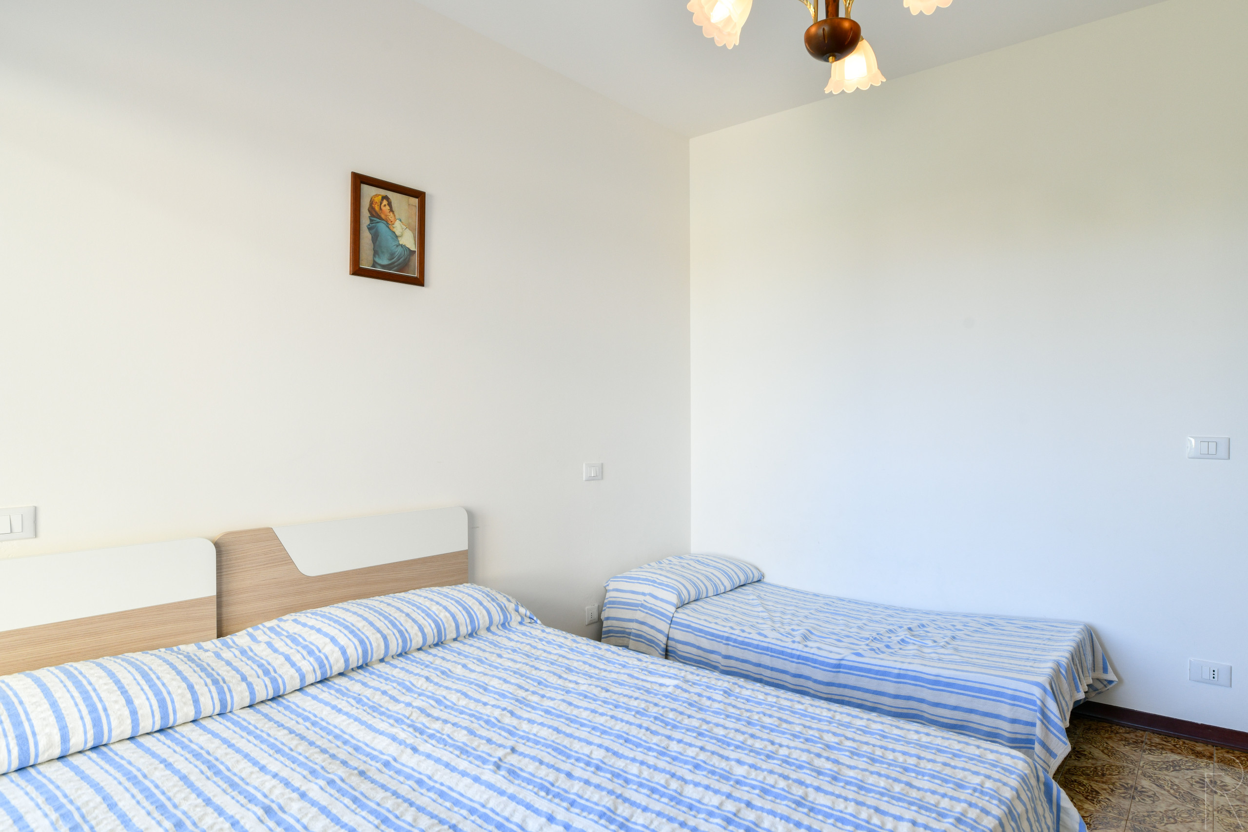 - Ein Schlafzimmer mit Doppelbett und Einzelbett.