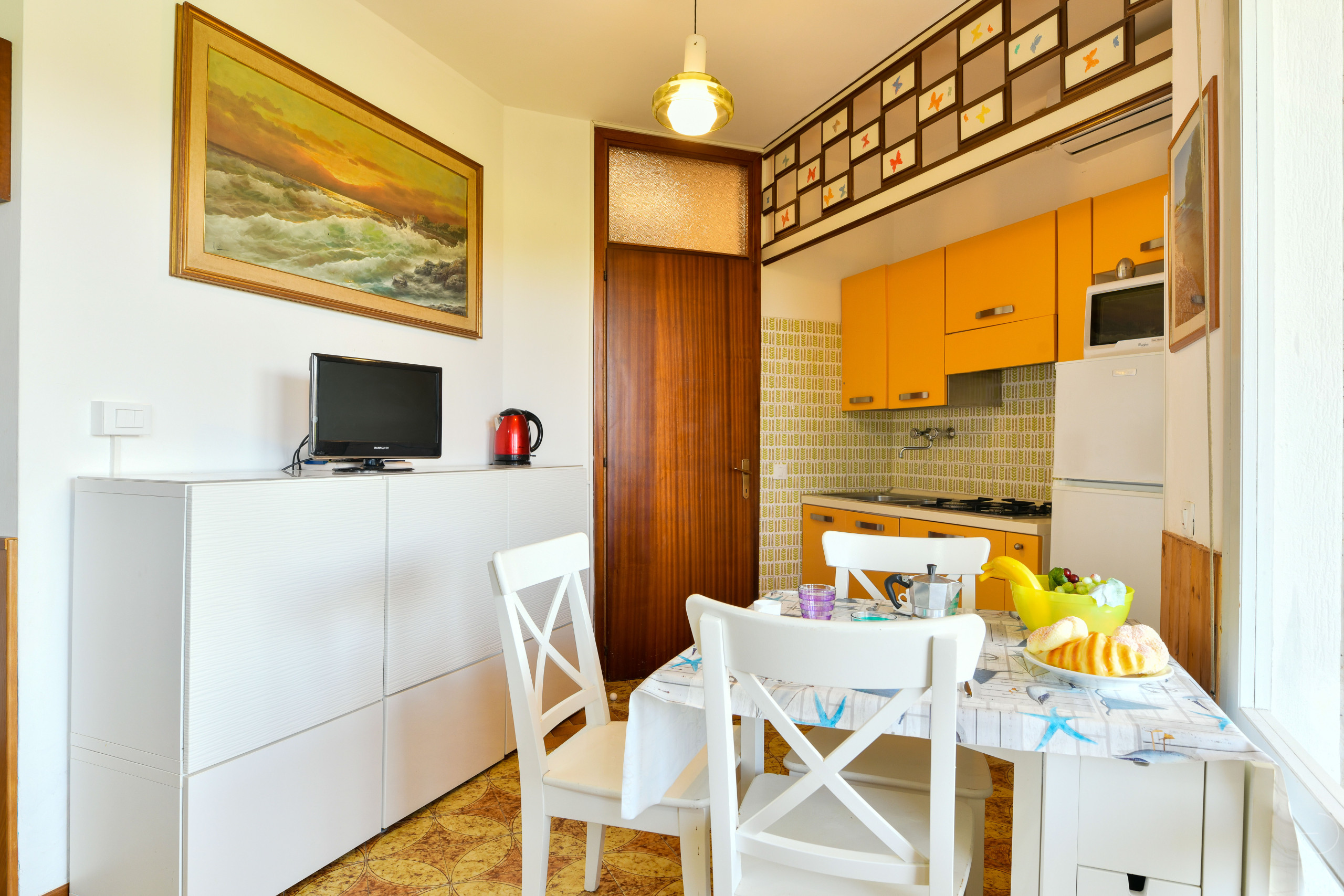 Nur 50 Meter vom Zentrum von Porto Santa Margherita entfernt, ist die Residenz BRIAN der perfekte Ort für alle, die einen Urlaub am Meer genießen möchten, ohne auf Komfort und Ruhe zu verzichten. Die komplett renovierte Wohnung ist darauf ausgelegt, Ihnen maximale Entspannung zu bieten.