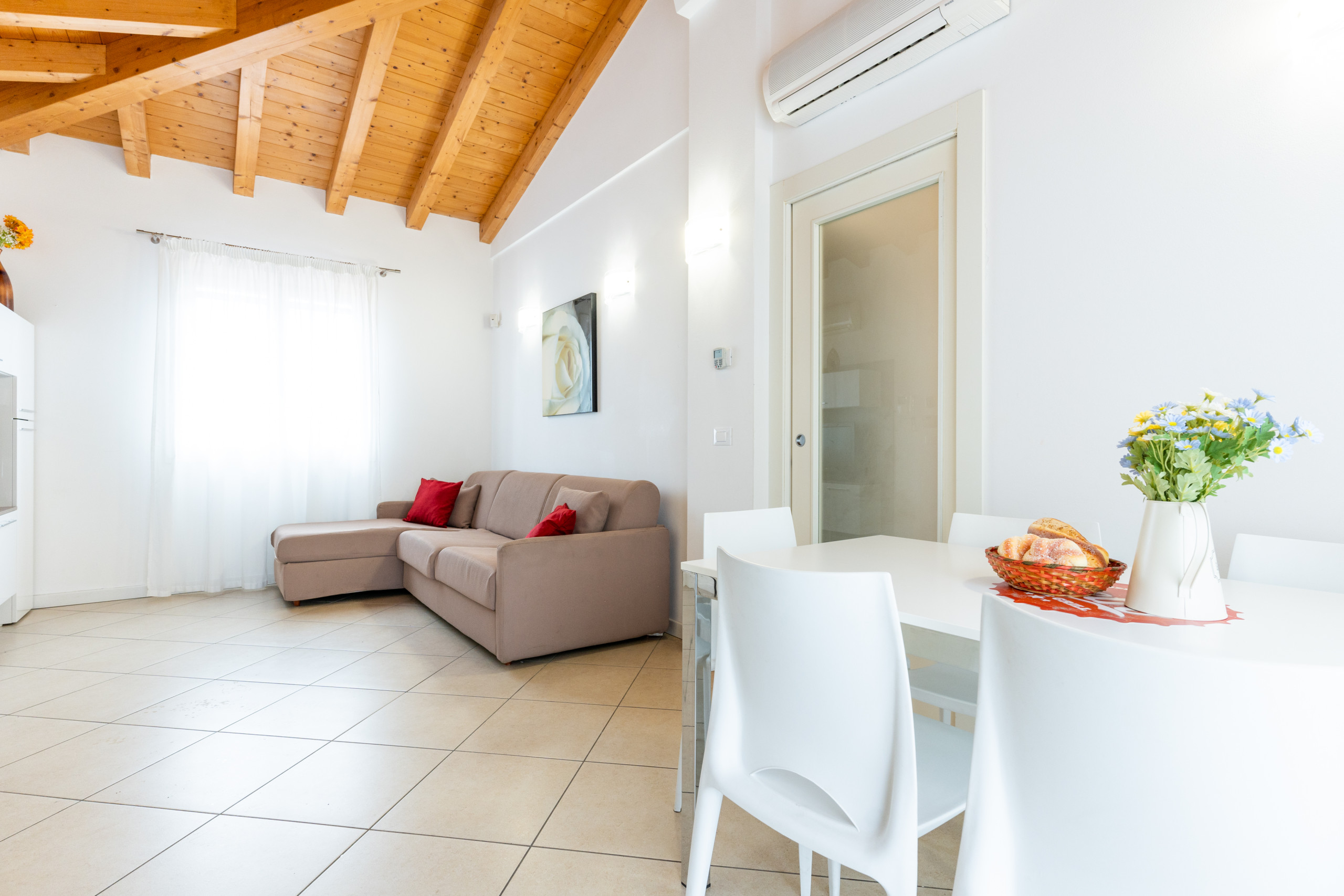 Das VILLAGGIO SANT'ANDREA ist eine Wohnanlage, die aus Wohnungen auf ein oder zwei Etagen besteht und sich etwa 800 Meter vom Strand entfernt befindet. Hier können Sie einen Urlaub voller Komfort und Spaß genießen, eingebettet in einer ruhigen Wohngegend, die ideal für Familien und Freundesgruppen ist.