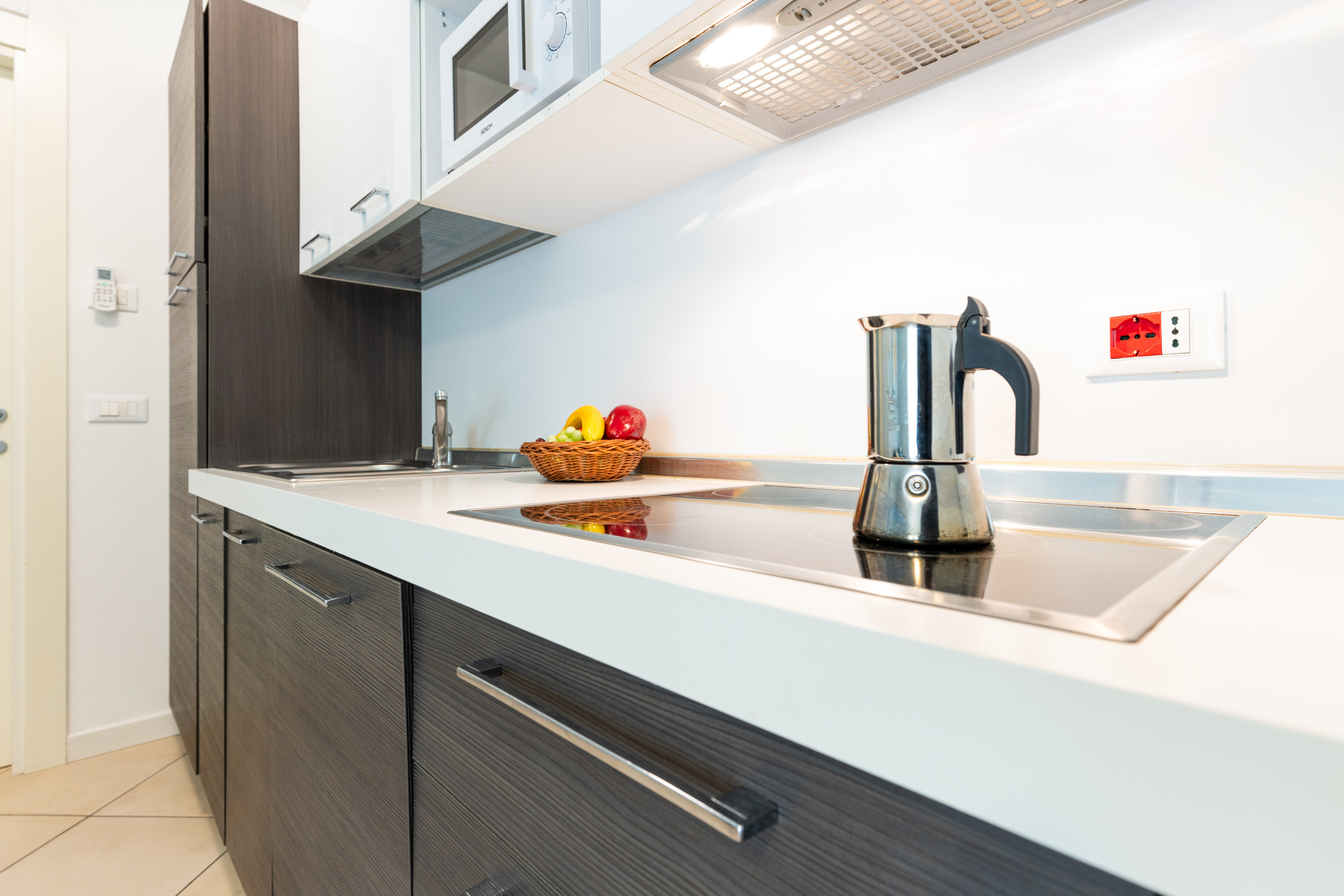Darüber hinaus sind Mikrowelle, Geschirrspüler und Waschmaschine vorhanden.
