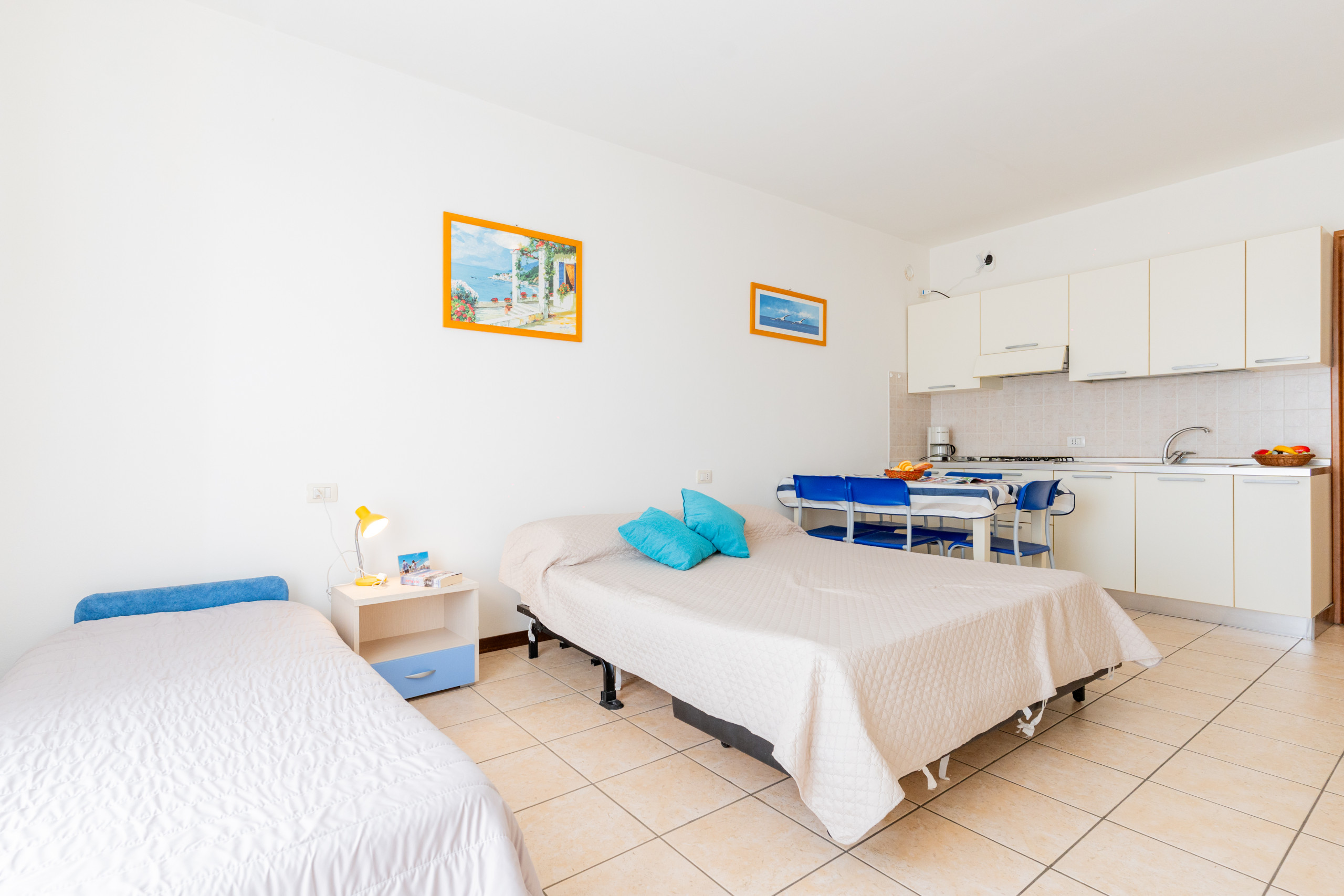 Die Unterkunft verfügt über Klimaanlage, um maximalen Komfort während der Sommermonate zu gewährleisten, und kann bequem bis zu 3 Personen beherbergen. Die Wohnung umfasst ein Doppelbett und ein Einzelbett, ideal für kleine Gruppen oder Familien.