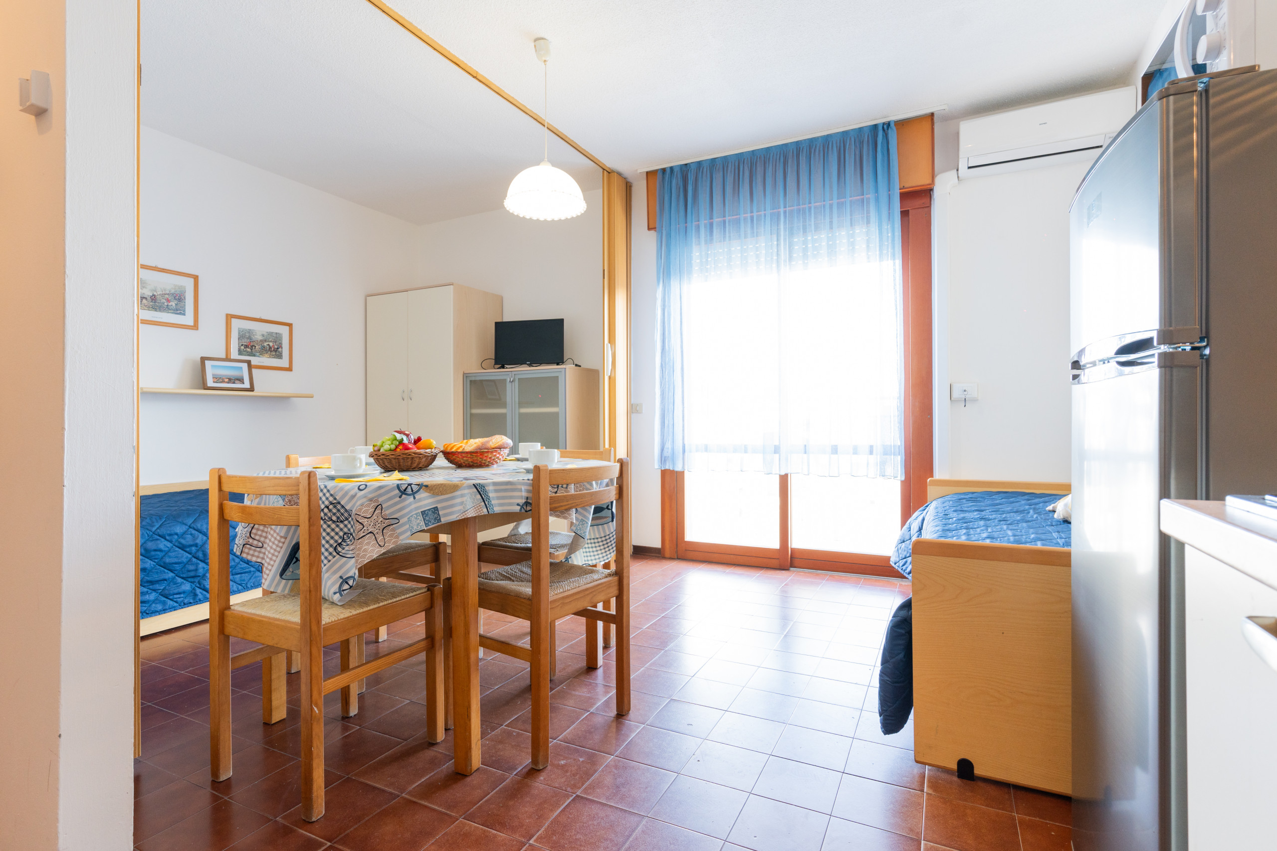Willkommen in dieser gemütlichen Wohnung im Residence RIELLO in Porto Santa Margherita, ein kleines Juwel, das perfekt für einen erholsamen Strandurlaub ist. Gelegen in einer ruhigen Wohngegend, aber in der Nähe von Geschäften und Restaurants, bietet dieser Raum die richtige Balance zwischen Komfort und Bequemlichkeit.