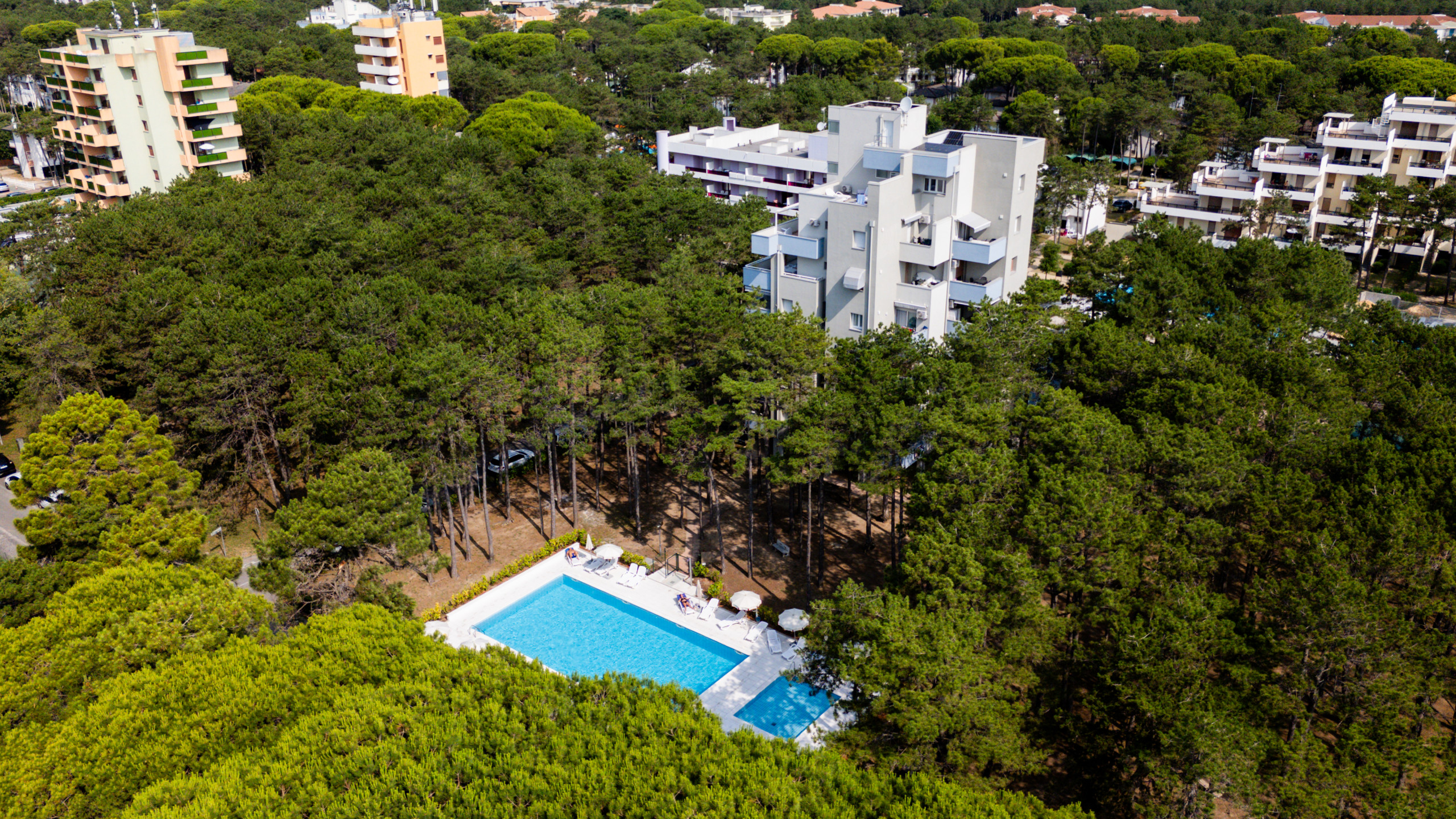 Immersed in an oasis of tranquillity and surrounded by greenery, the Tivoli Village is a welcoming residential complex with a swimming pool for adults and children, located approximately 800 metres from the sea. The location is ideal for those seeking a relaxing holiday yet close to the vibrant atmosphere of Bibione Spiaggia: just a few steps away are the Luna Park and the main street, bustling with shops, restaurants, bars, ice cream parlours and game rooms, easily accessible with a short walk of about ten minutes.