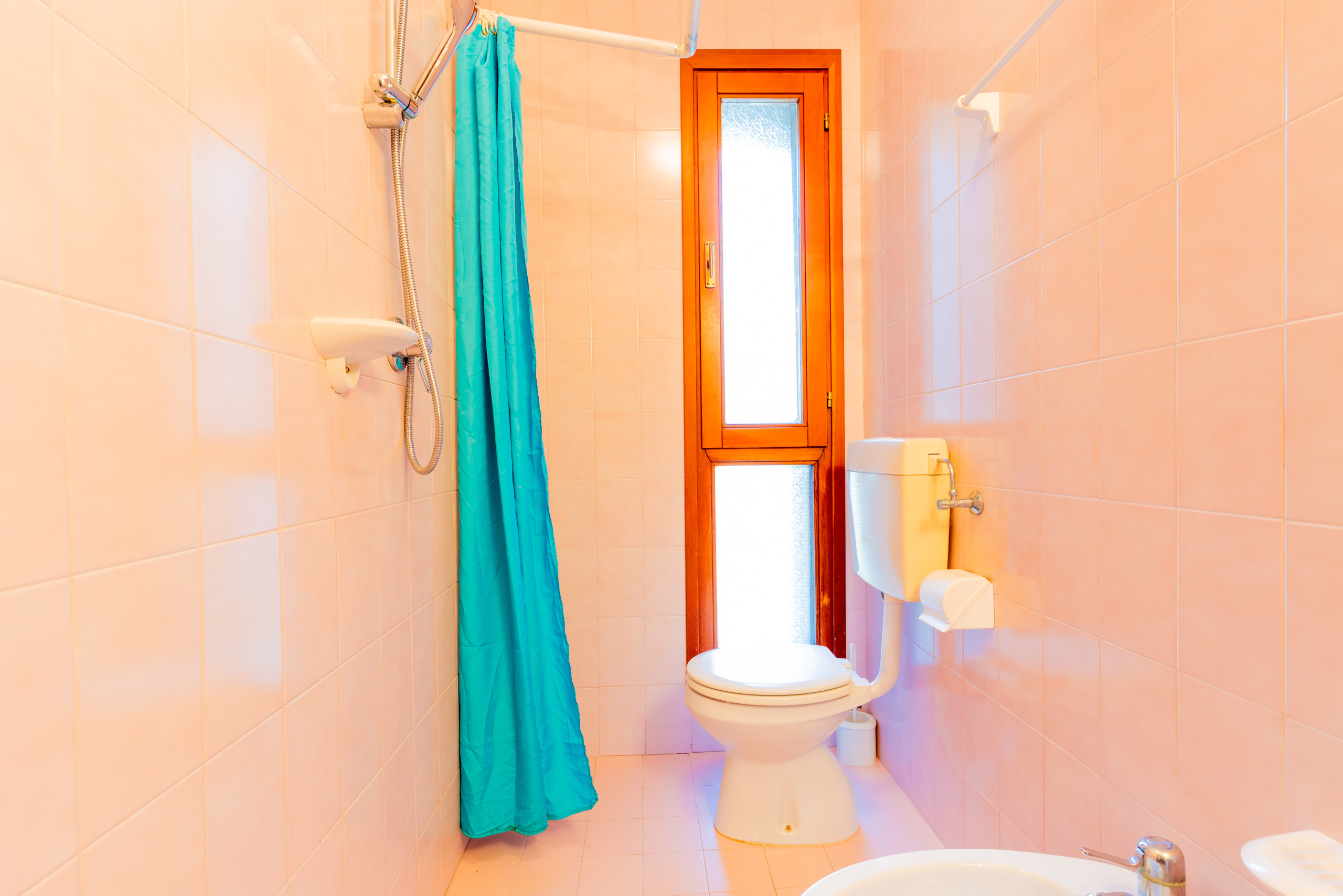 - bathroom with shower and balcony.