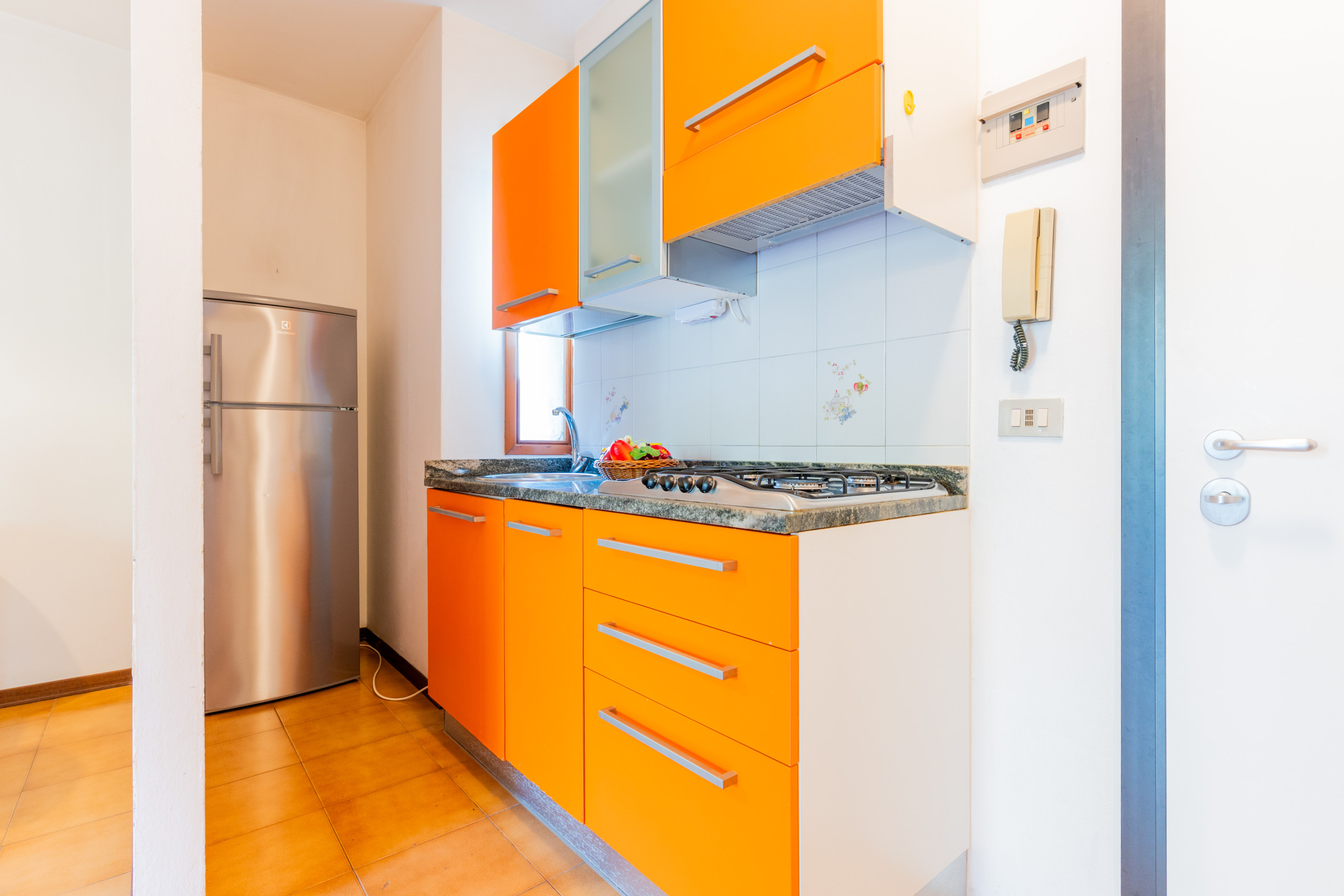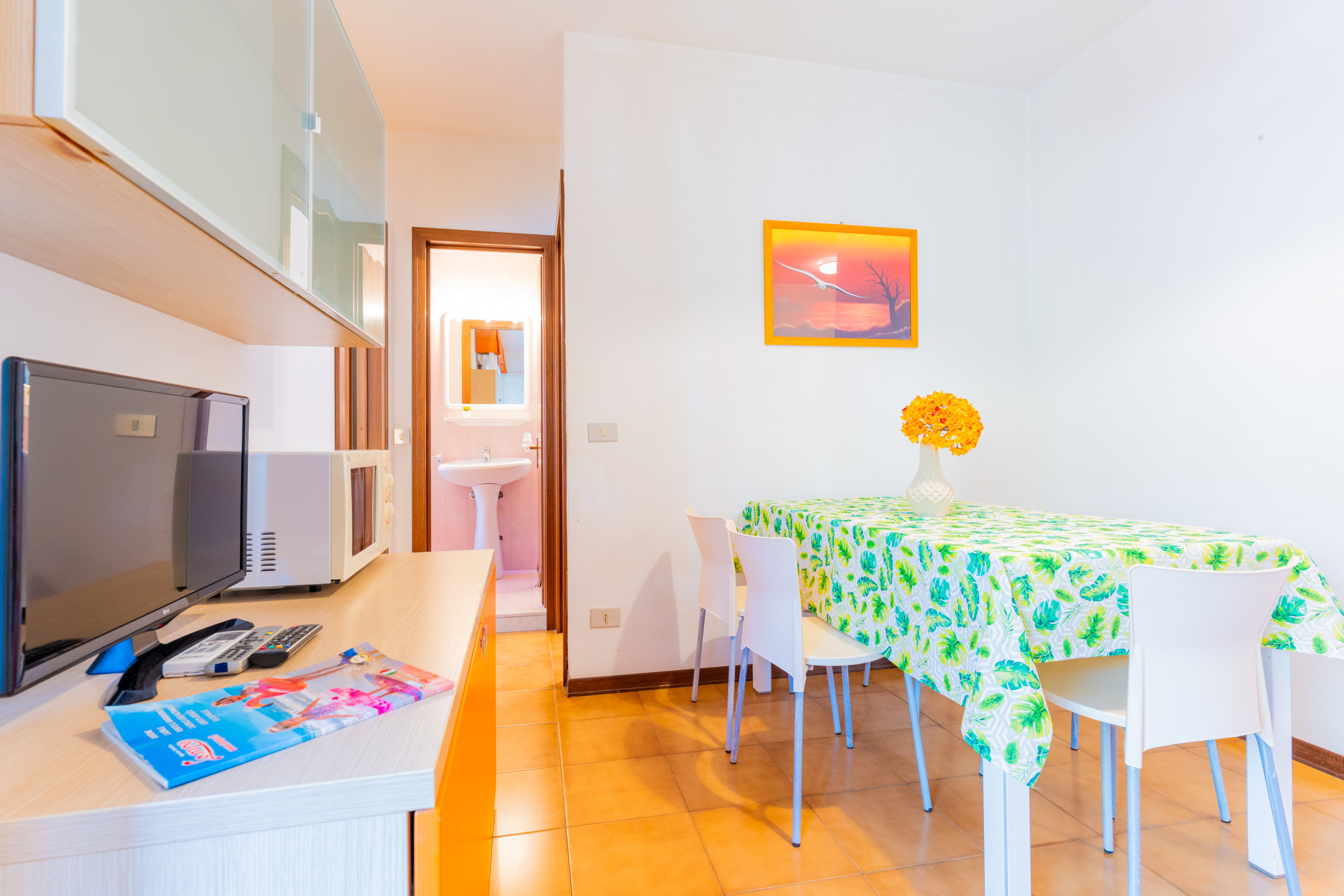 The renovated three-room apartments, located between the second and third floors, offer spacious terraces or balconies facing south or north-west, ideal for enjoying a coffee in the sun or an outdoor dinner while admiring different views of Bibione.