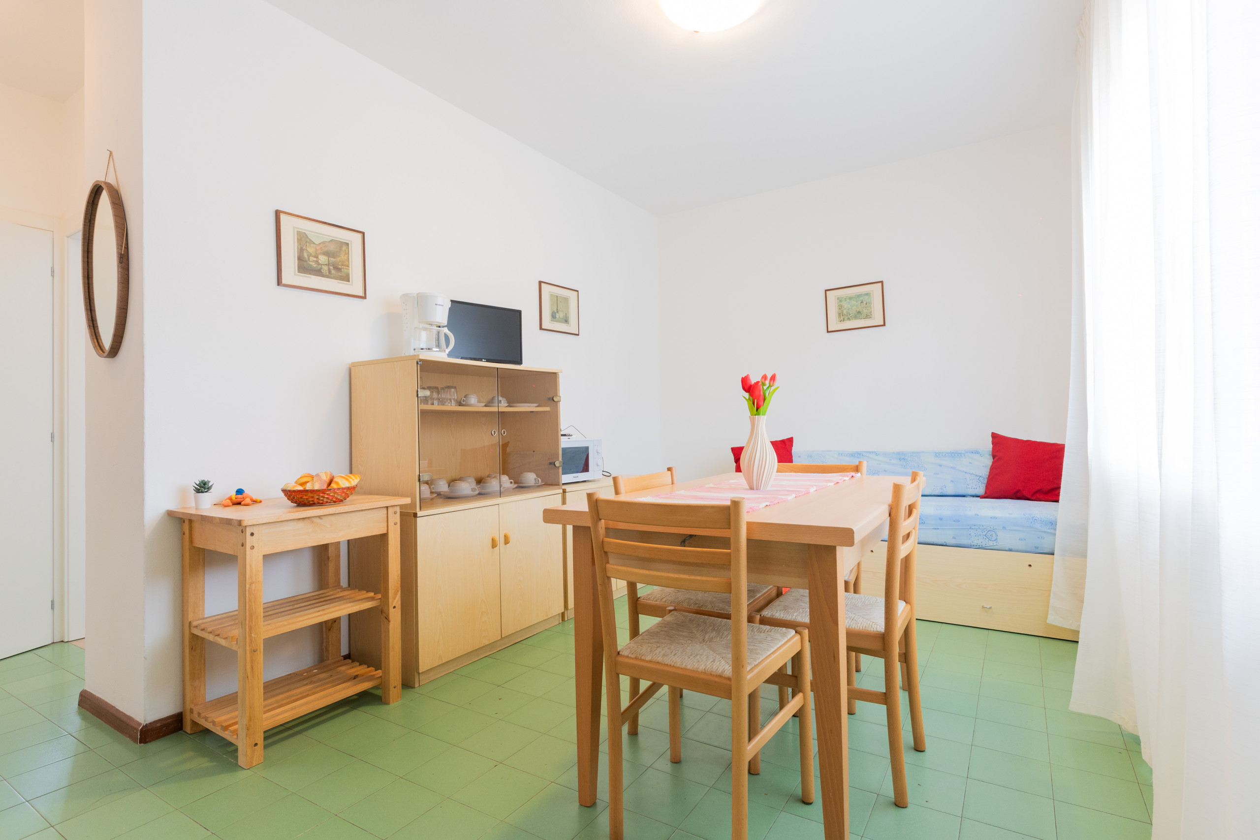 - a welcoming living room with an equipped kitchenette and a double sofa bed,