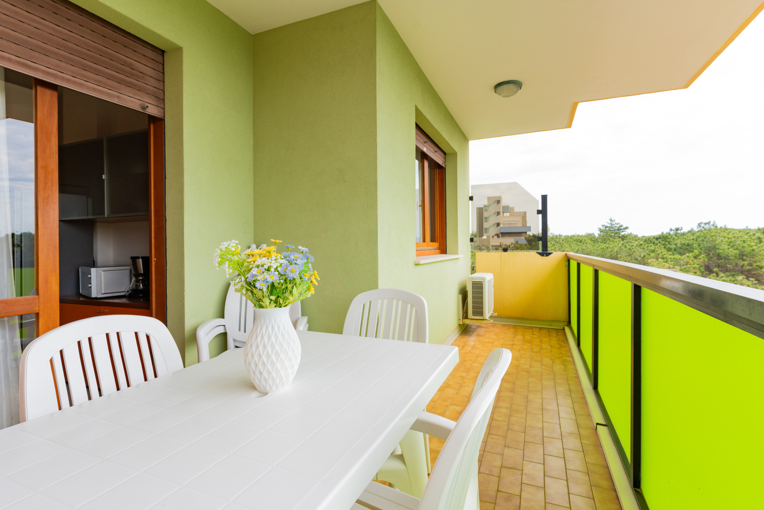 The renovated three-room apartments, located between the second and third floors, offer spacious terraces or balconies facing south or north-west, ideal for enjoying a coffee in the sun or an outdoor dinner while admiring different views of Bibione.