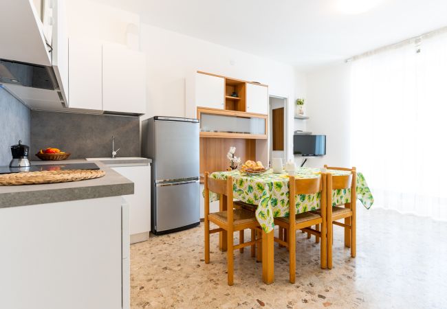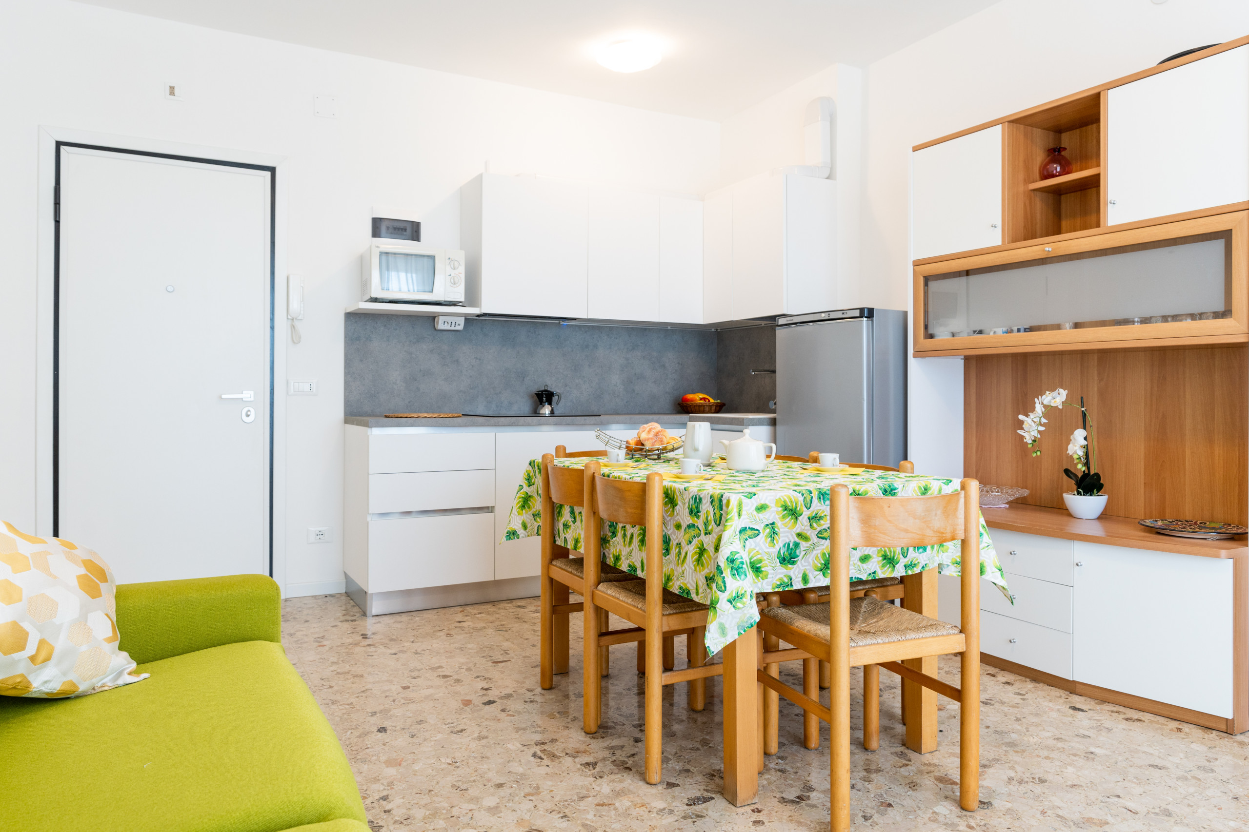 The renovated three-room apartments, located between the second and third floors, offer spacious terraces or balconies facing south or north-west, ideal for enjoying a coffee in the sun or an outdoor dinner while admiring different views of Bibione.