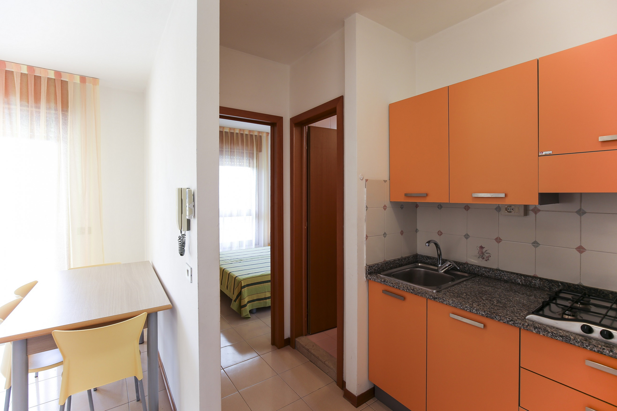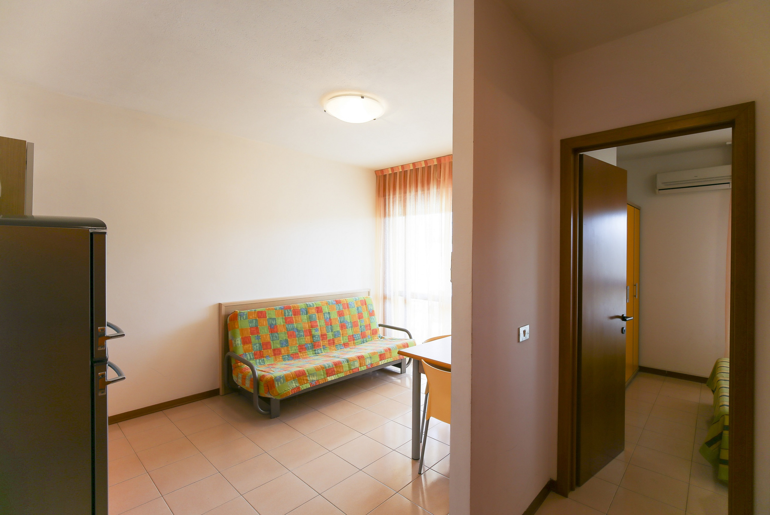 Two rooms apartment with living room with kitchen and double sofa bed, bedroom with double bed, balcony. Campiello is a building in Bibione Lido del Sole, 400 metres far from the sea, with pool for adults and for children and washing machine. All flats are renewed, they have pool view, satellite tv, air conditioner, microwave oven, security door and numbered parking place. Beach service in price included.