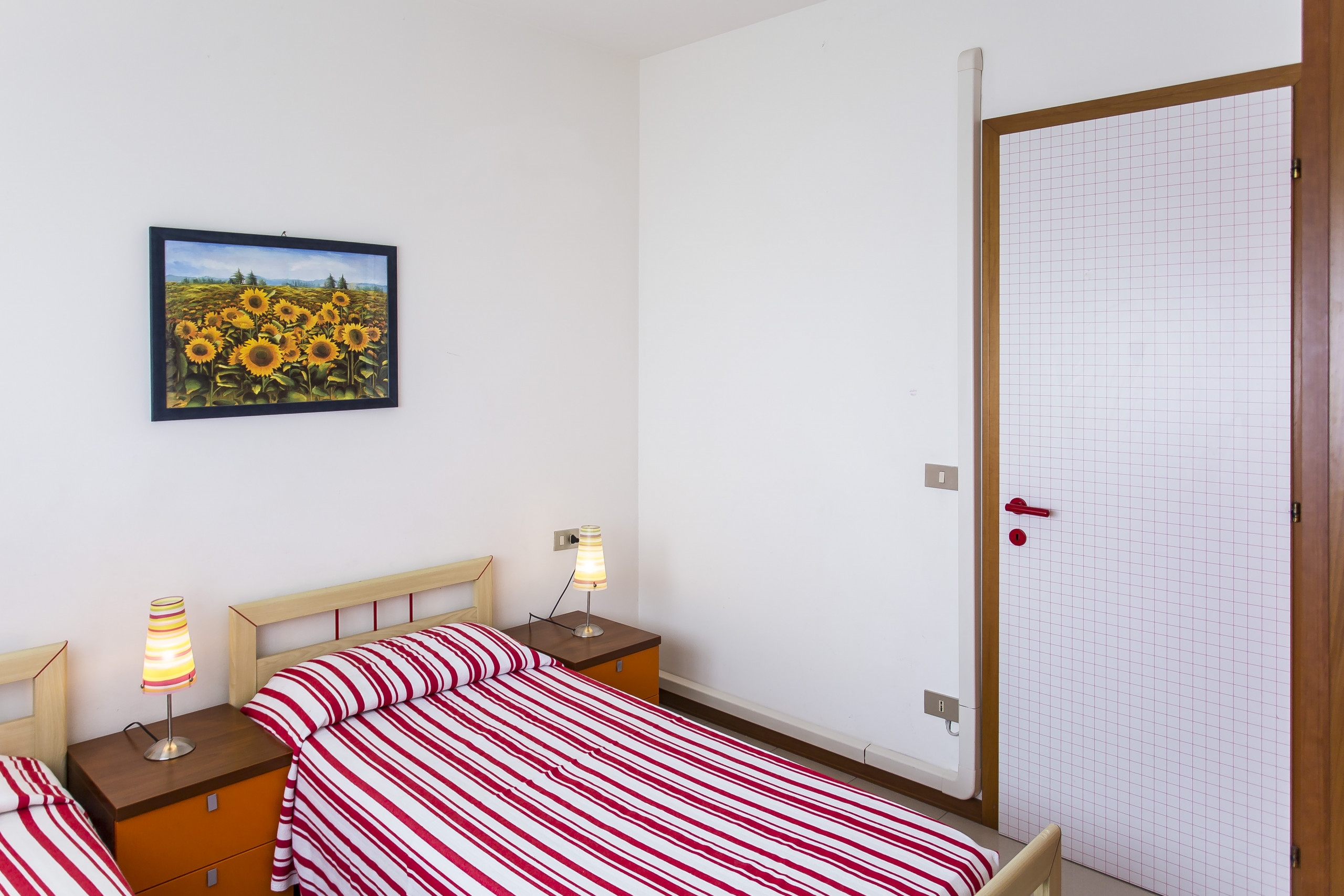 The two-room apartments, located on the second floor, offer balconies with different exposures and views, ideal for enjoying the sea breeze and outdoor relaxation moments. Each accommodation has a double bedroom with an added single bed, a living room with an equipped kitchenette and sofa (not a bed), as well as a bathroom with a shower enclosure.