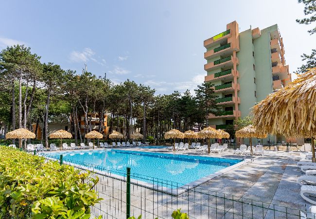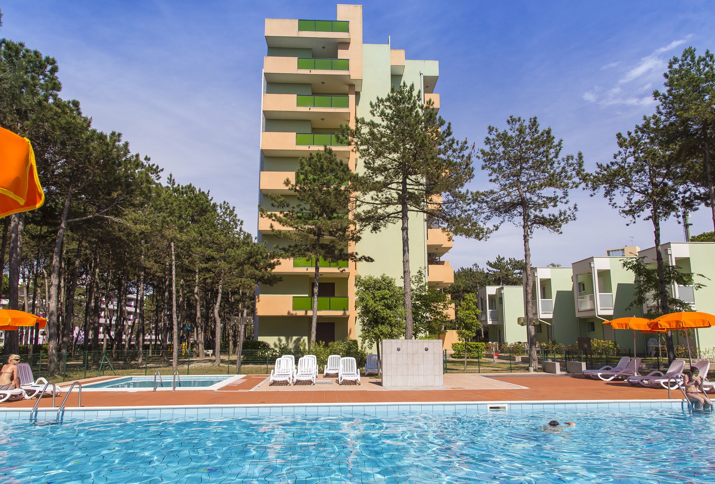 Immersed in an oasis of tranquillity and surrounded by greenery, the Tivoli Village is a welcoming residential complex with a swimming pool for adults and children, located approximately 800 metres from the sea. The location is ideal for those seeking a relaxing holiday yet close to the vibrant atmosphere of Bibione Spiaggia: just a few steps away are the Luna Park and the main street, bustling with shops, restaurants, bars, ice cream parlours and game rooms, easily accessible with a short walk of about ten minutes.