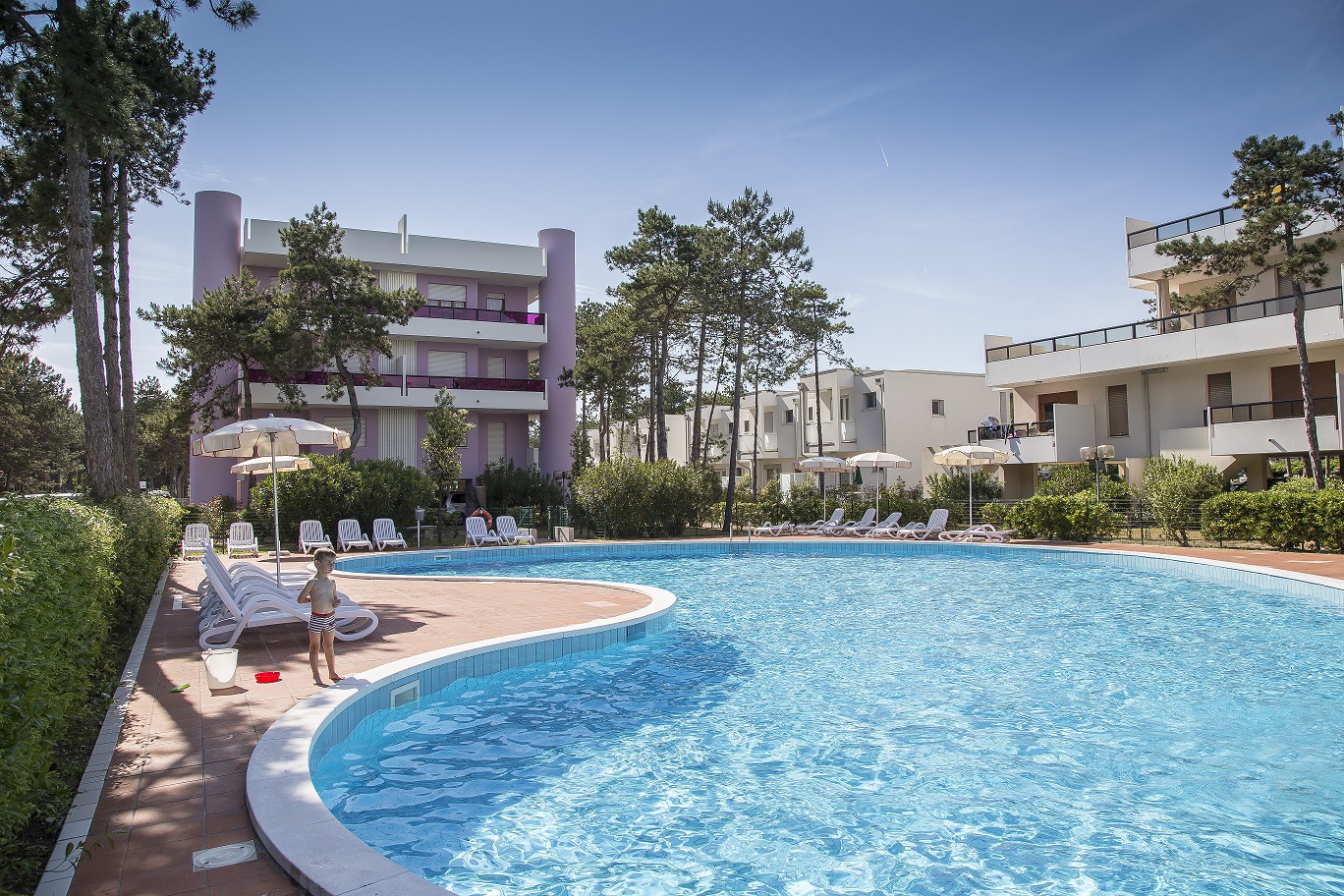 Immersed in an oasis of tranquillity and surrounded by greenery, the Tivoli Village is a welcoming residential complex with a swimming pool for adults and children, located approximately 800 metres from the sea. The location is ideal for those seeking a relaxing holiday yet close to the vibrant atmosphere of Bibione Spiaggia: just a few steps away are the Luna Park and the main street, bustling with shops, restaurants, bars, ice cream parlours and game rooms, easily accessible with a short walk of about ten minutes.