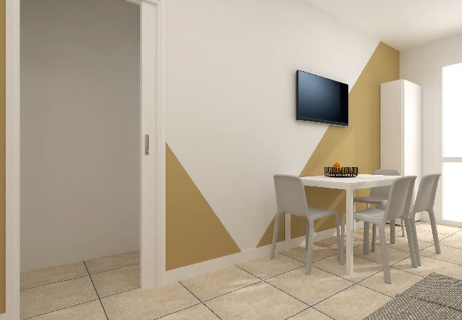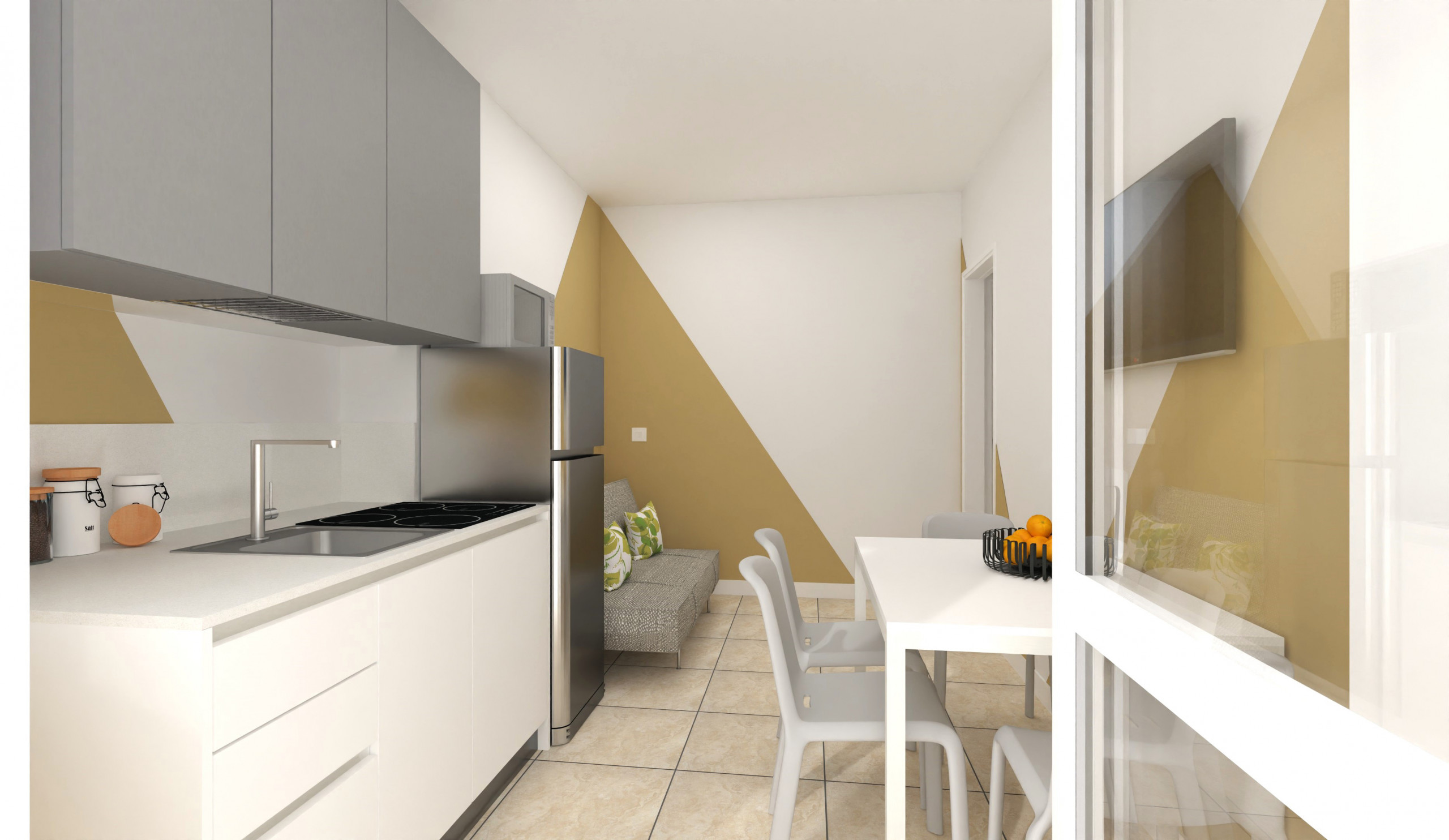 Two-room apartment completely renovated on the ground floor with external space with barbecue. Living room with kitchen corner induction cooktop and single sofa beds, bedroom with double bed and bunk bed, bathroom with shower box. It's furnished of air conditioning, electric kettle, coffee-machine, microwave, safe, big refrigerator, washing-machine, Wifi and TV sat. Numbered not covered parking place.