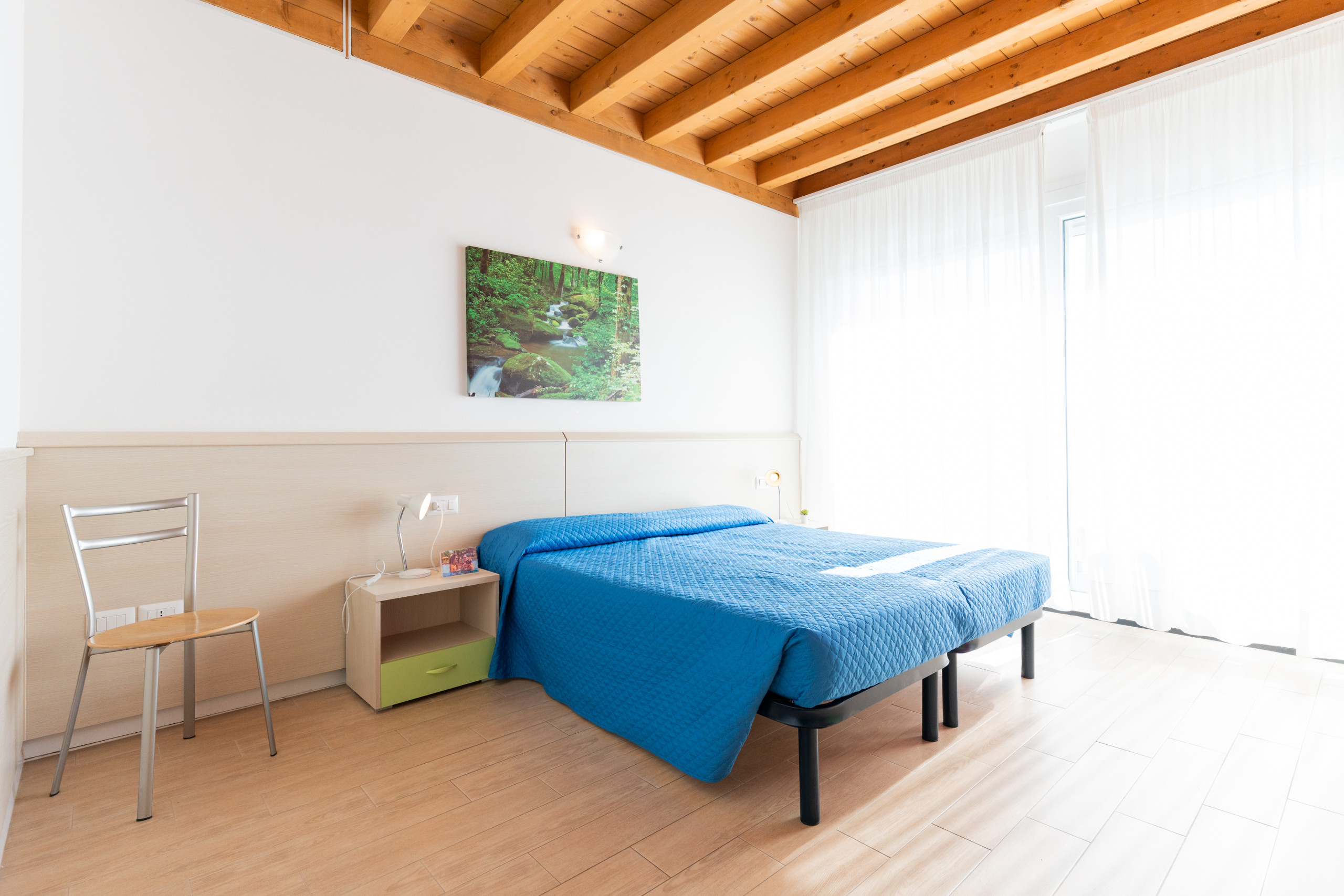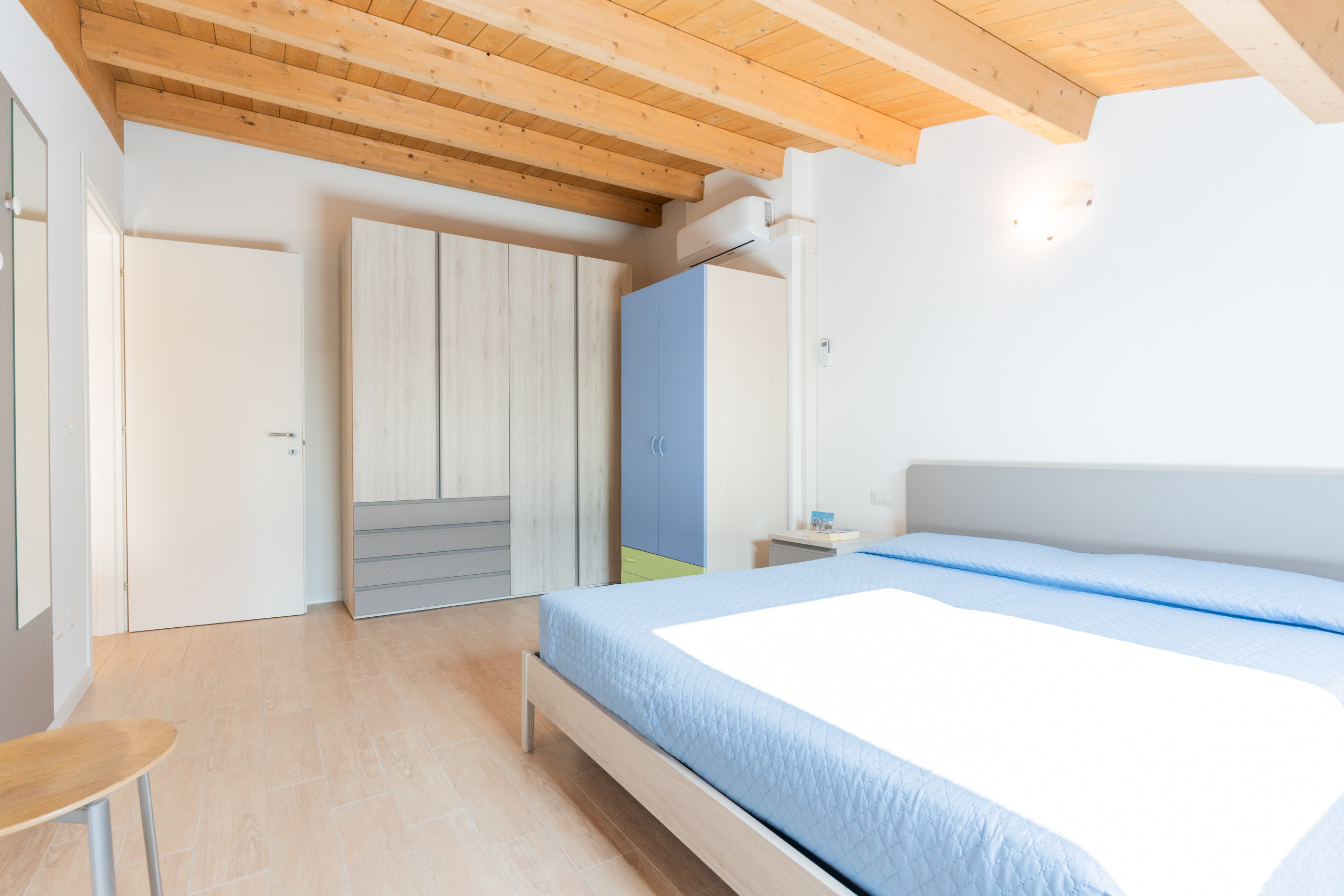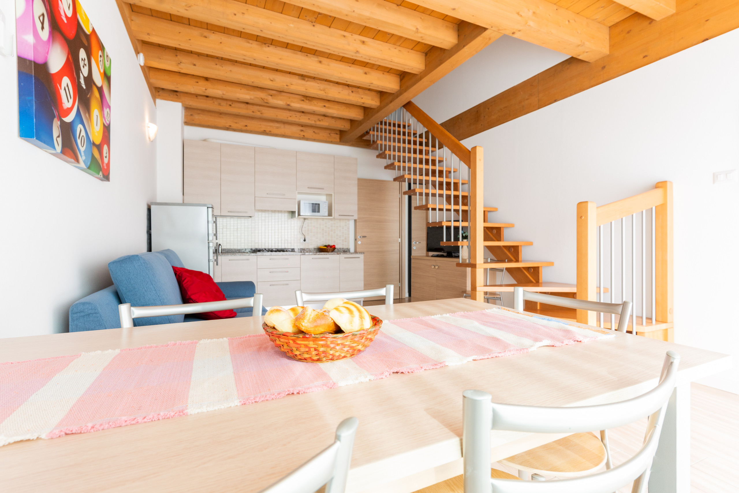 The two-room apartments, located on the second floor, offer balconies with different exposures and views, ideal for enjoying the sea breeze and outdoor relaxation moments. Each accommodation has a double bedroom with an added single bed, a living room with an equipped kitchenette and sofa (not a bed), as well as a bathroom with a shower enclosure.