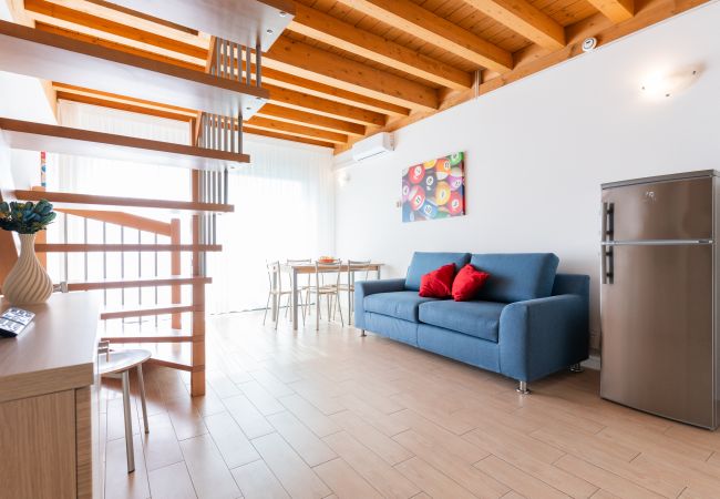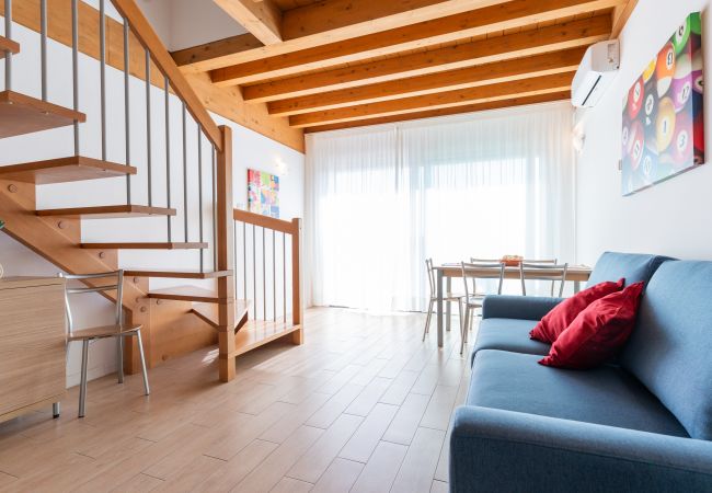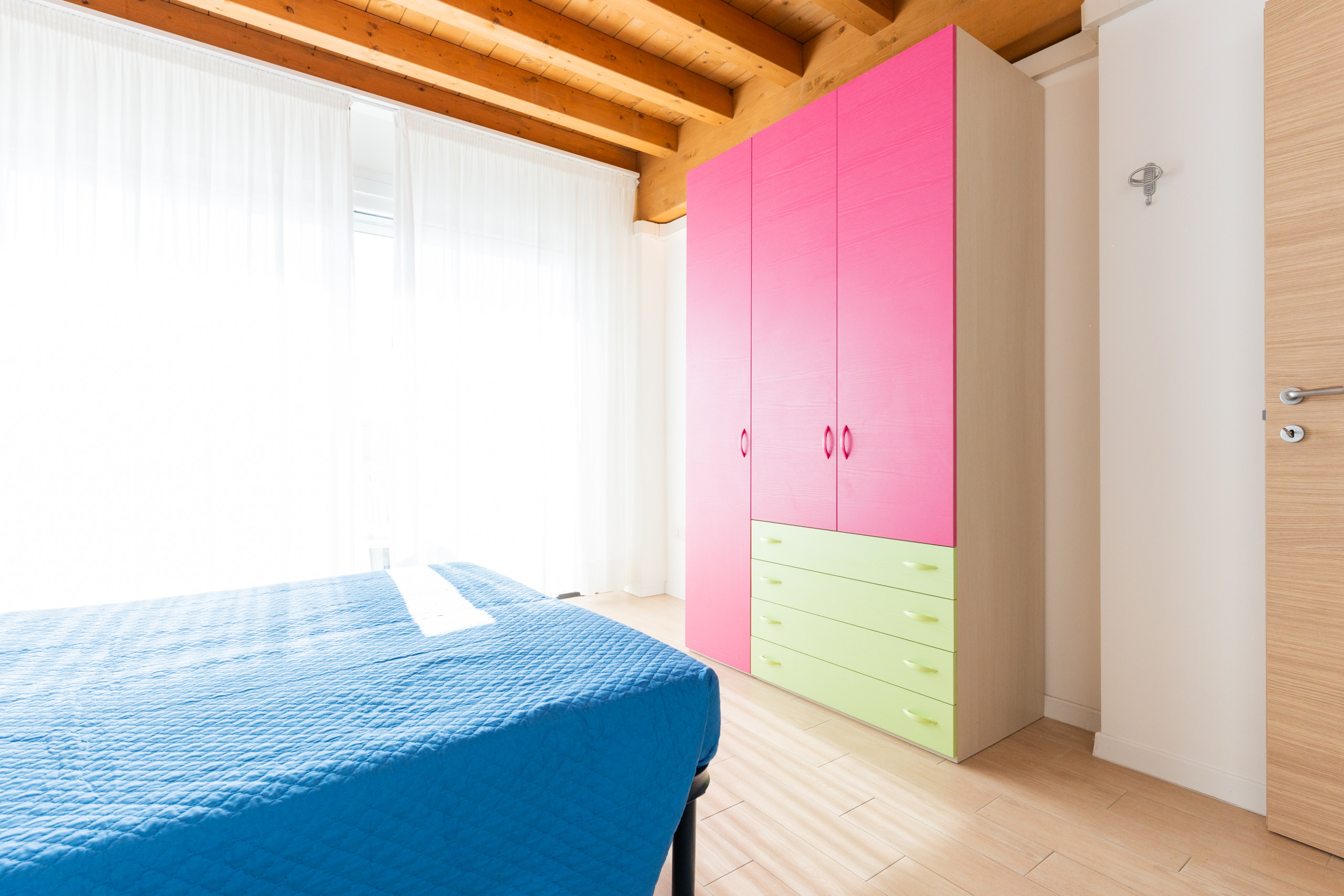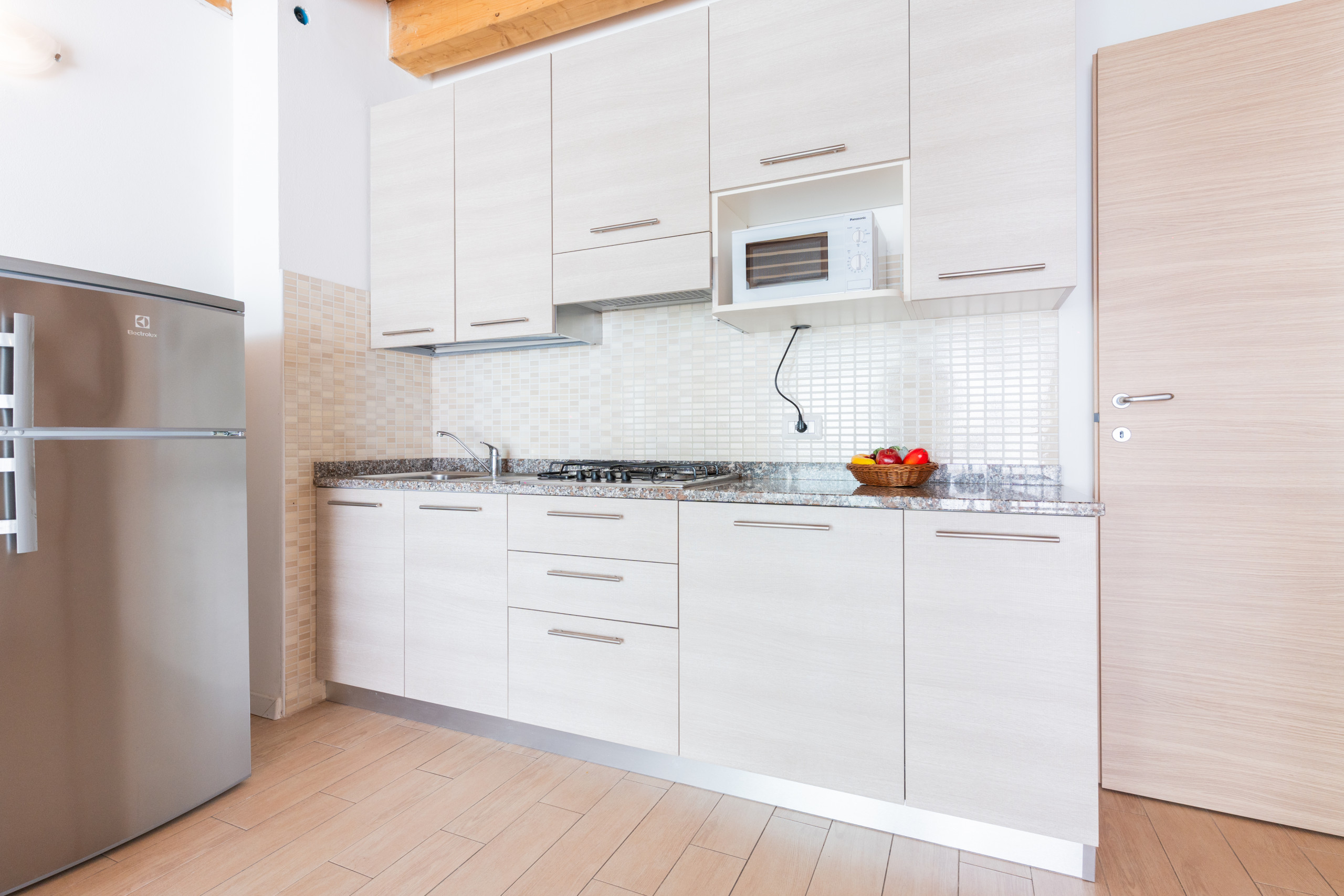 The two-room apartments, located on the second floor, offer balconies with different exposures and views, ideal for enjoying the sea breeze and outdoor relaxation moments. Each accommodation has a double bedroom with an added single bed, a living room with an equipped kitchenette and sofa (not a bed), as well as a bathroom with a shower enclosure.