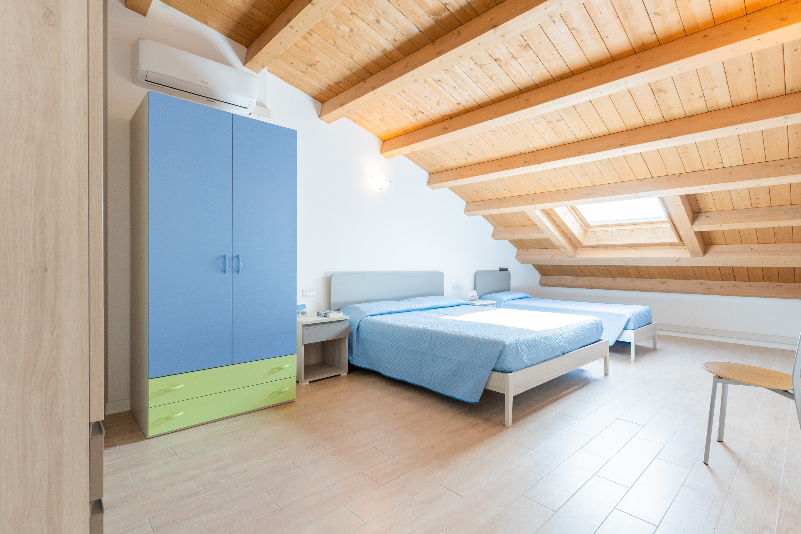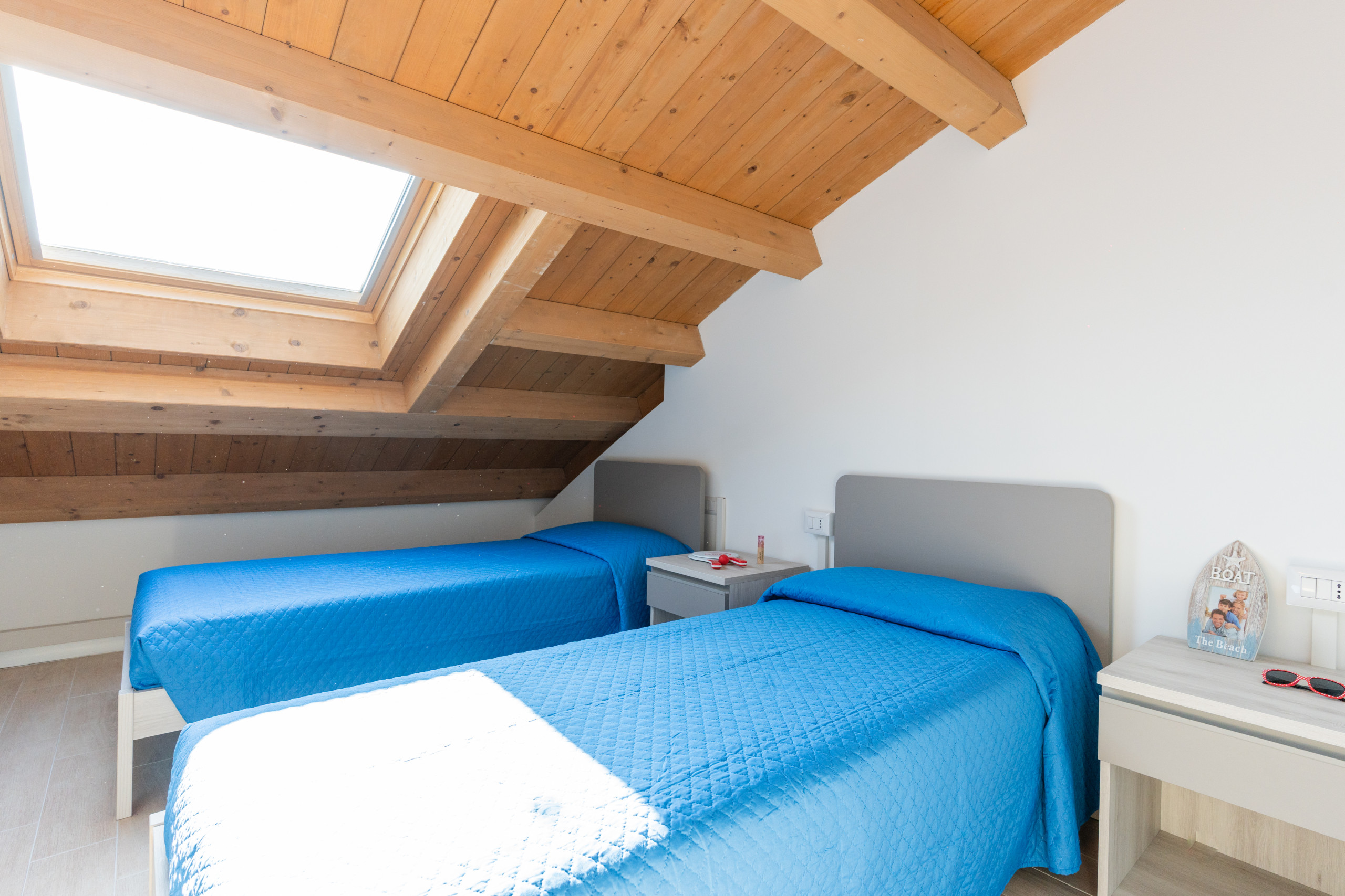 The attic floor adds additional space and comfort, with a master bedroom with a single bed added, a second room with two single beds and a bathroom with a shower enclosure.