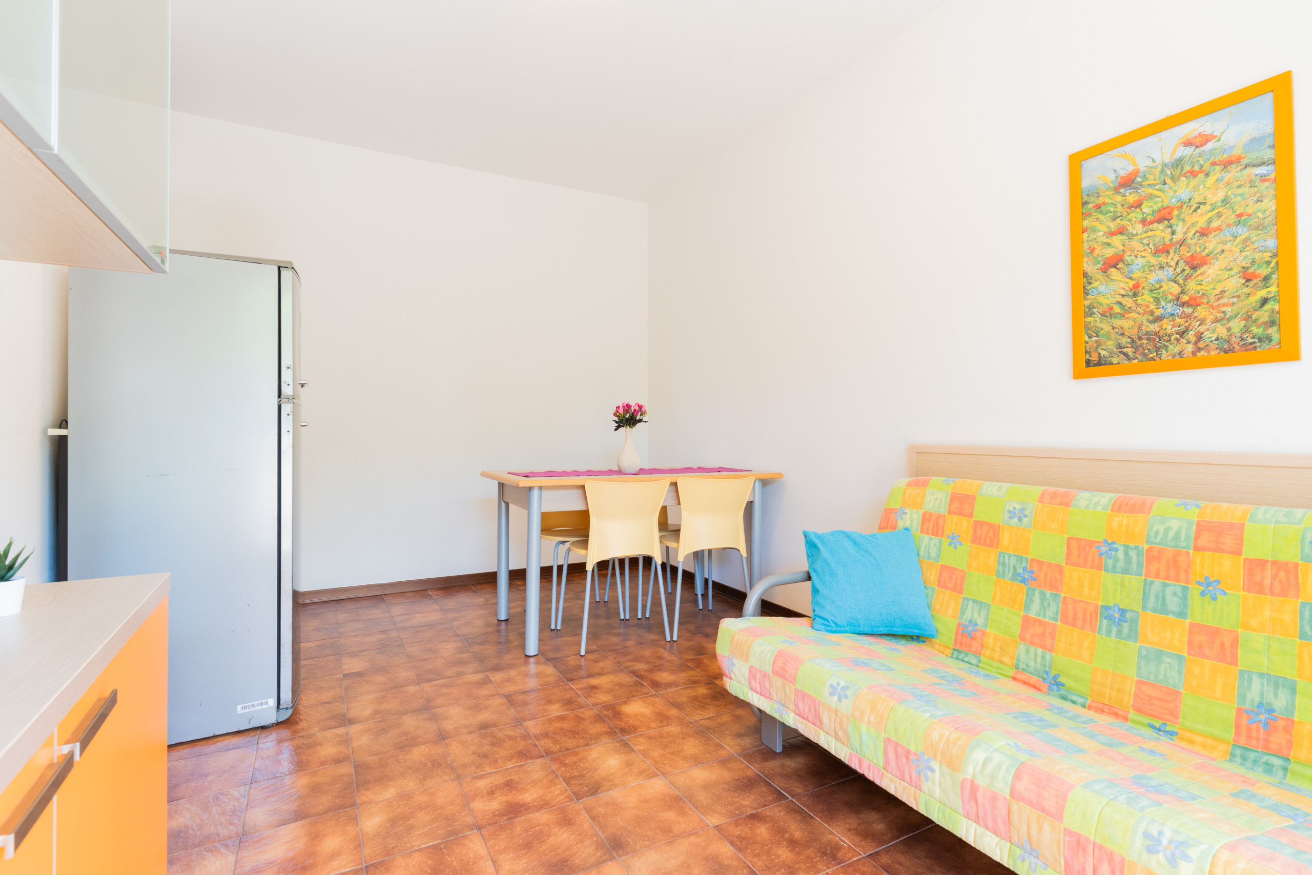 - a bright living room with an equipped kitchenette and a double sofa bed,