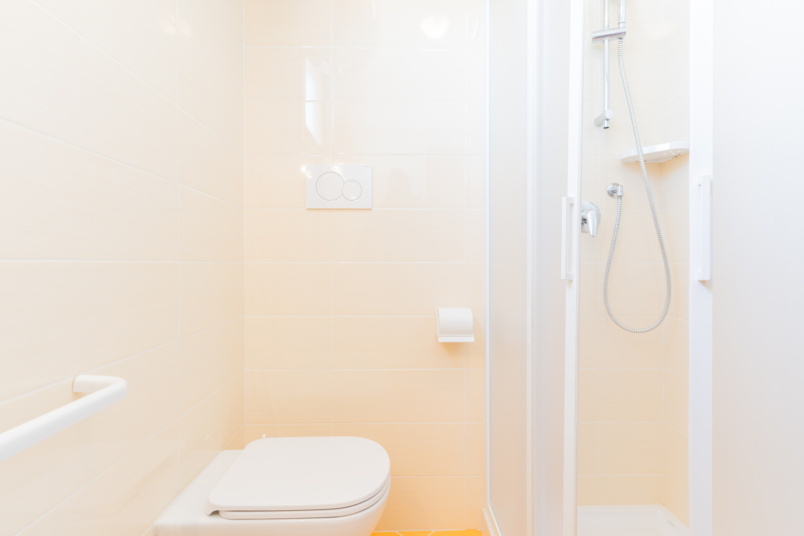- a bathroom with a shower cabin.