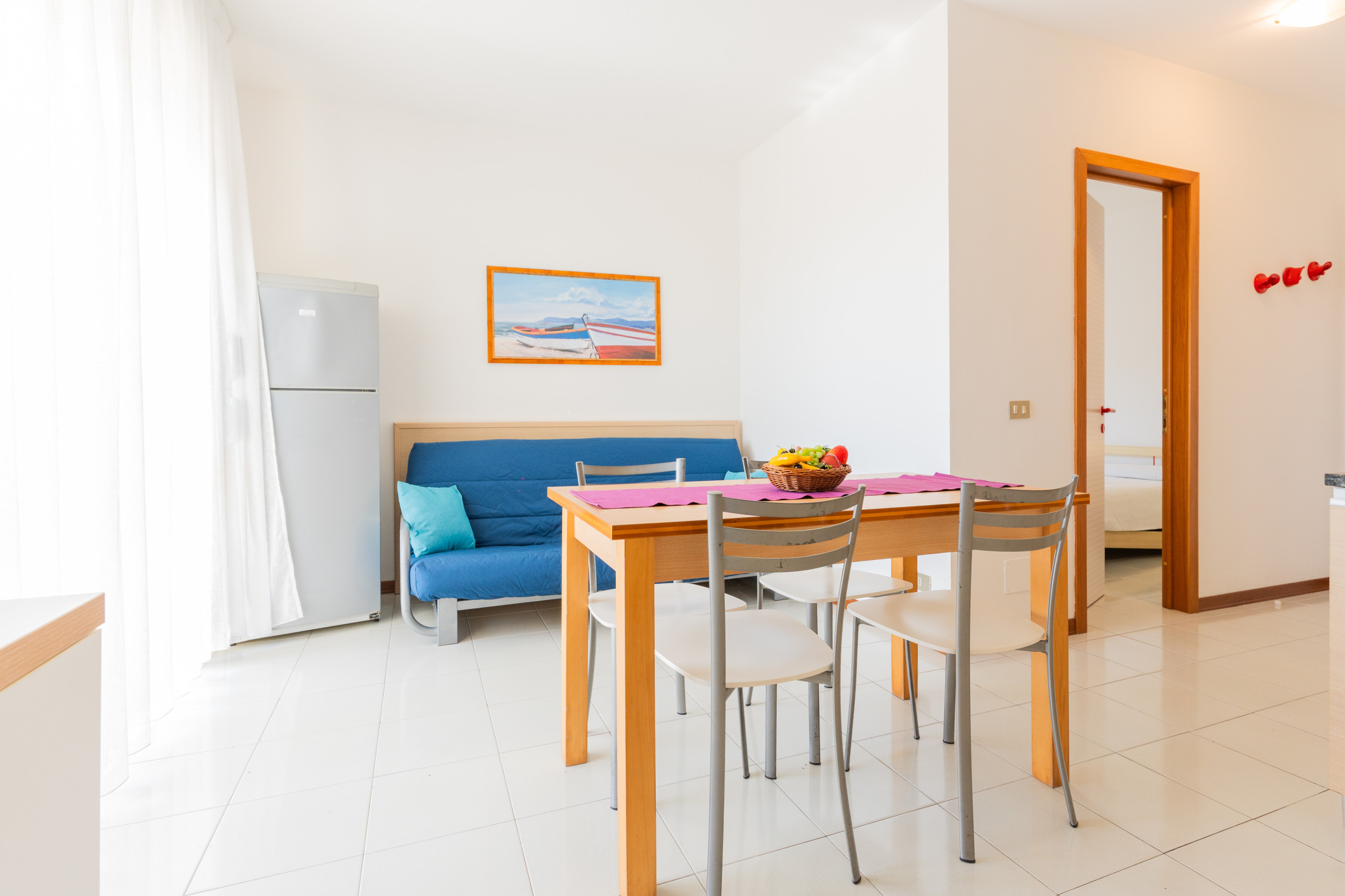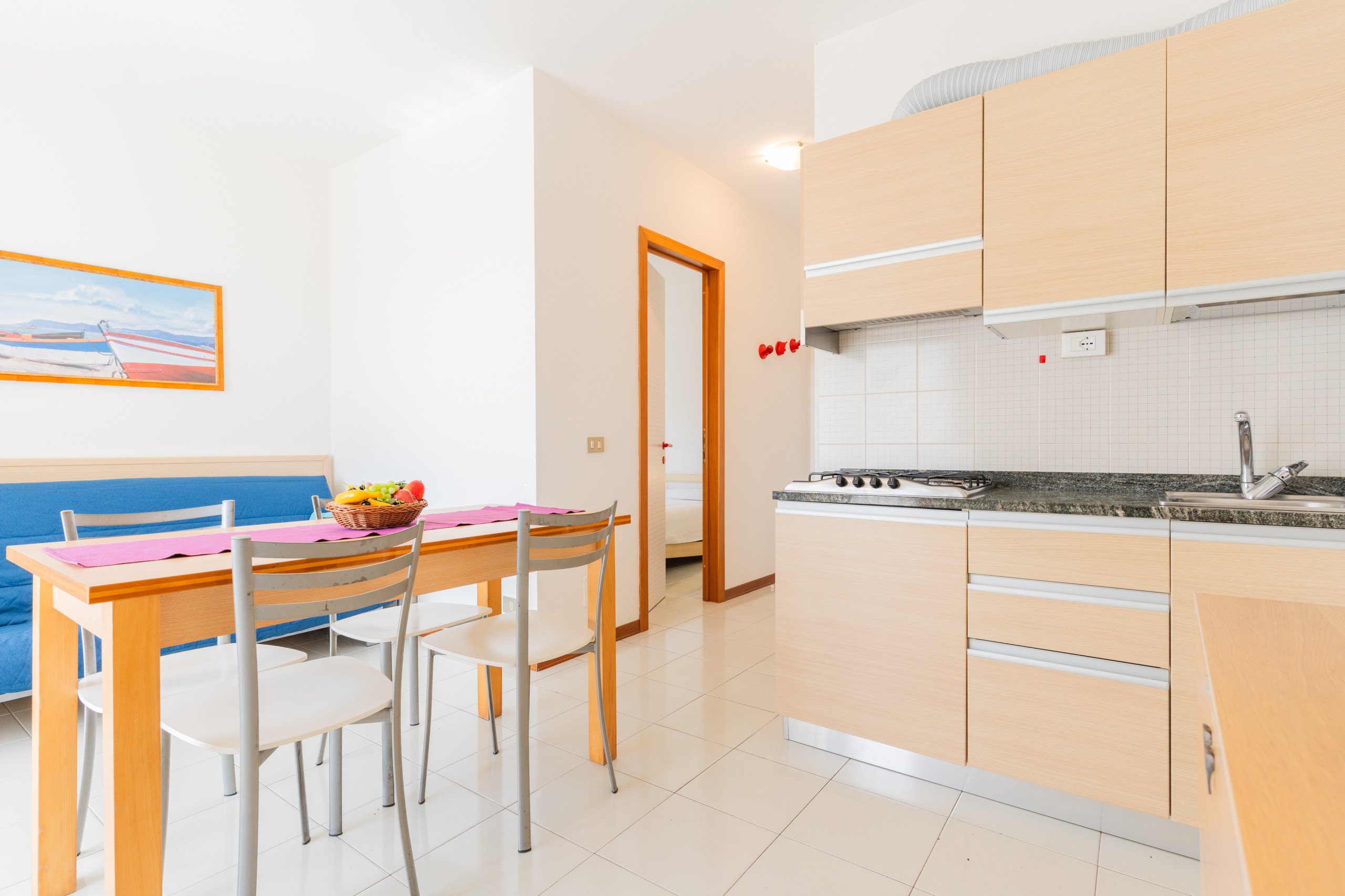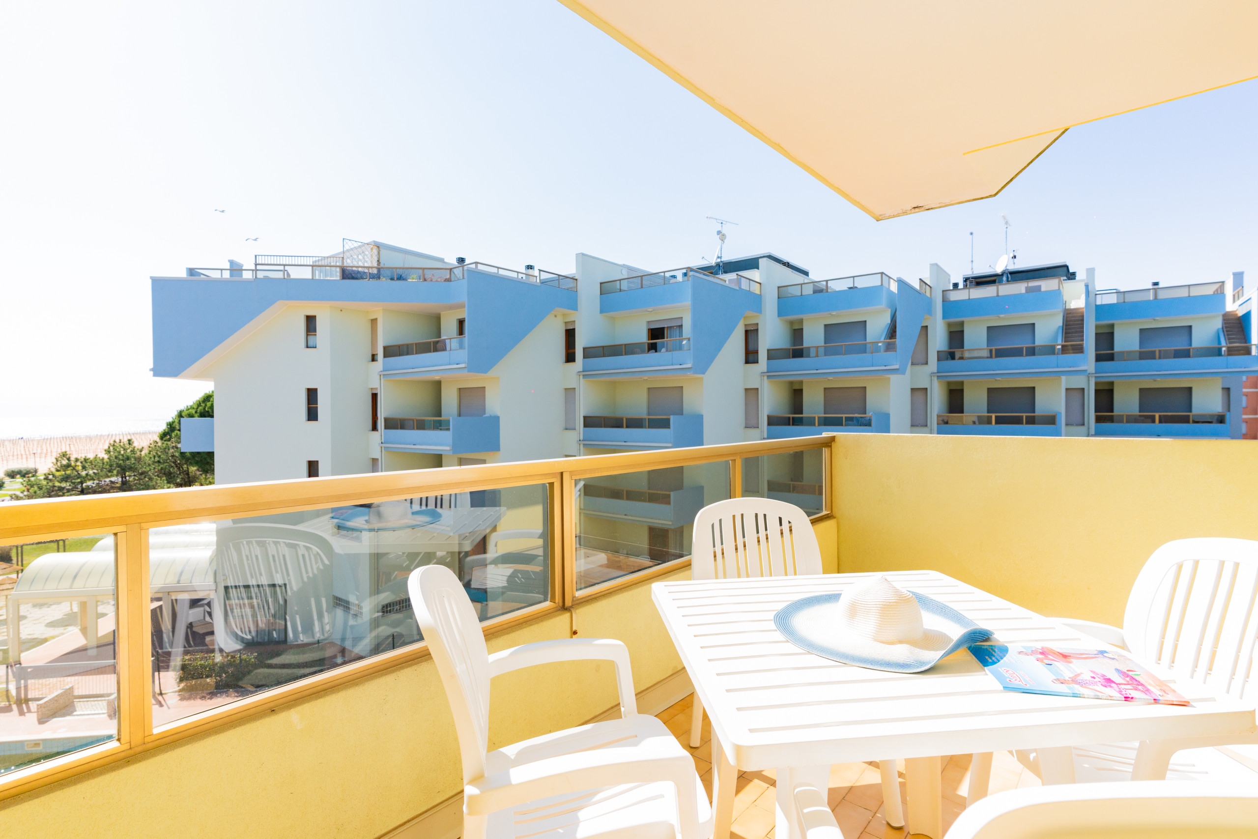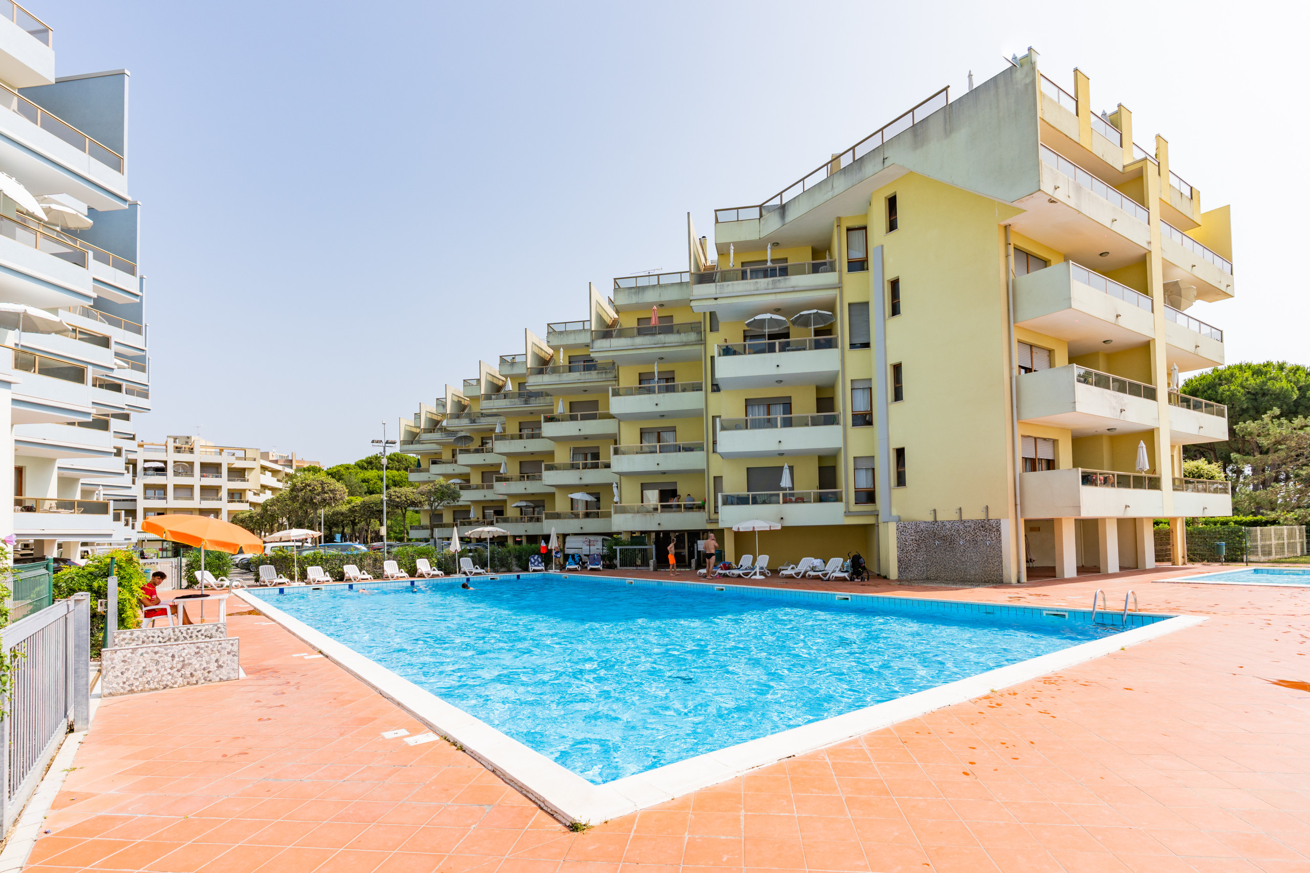 The apartments, located between the first and third floors, feature a balcony with various exposures — sunny in the morning or afternoon, with sea view, pool view or internal view — perfect for enjoying the relaxed atmosphere of the Lido del Sole.