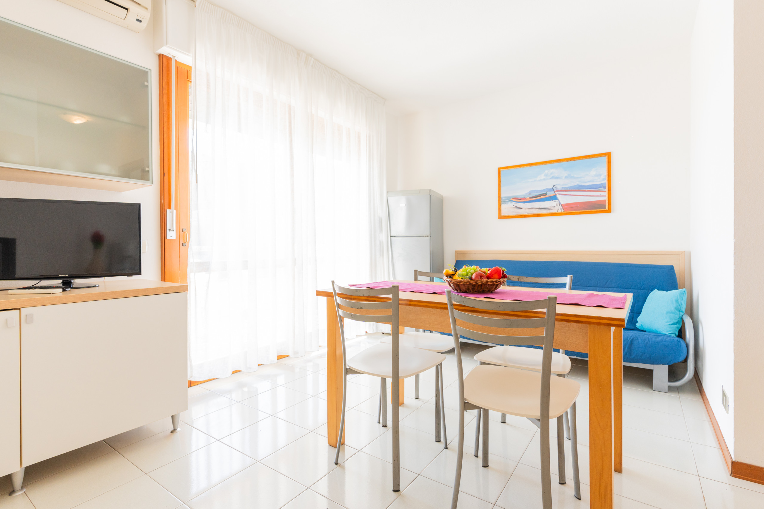- Living room with equipped kitchenette and double sofa bed