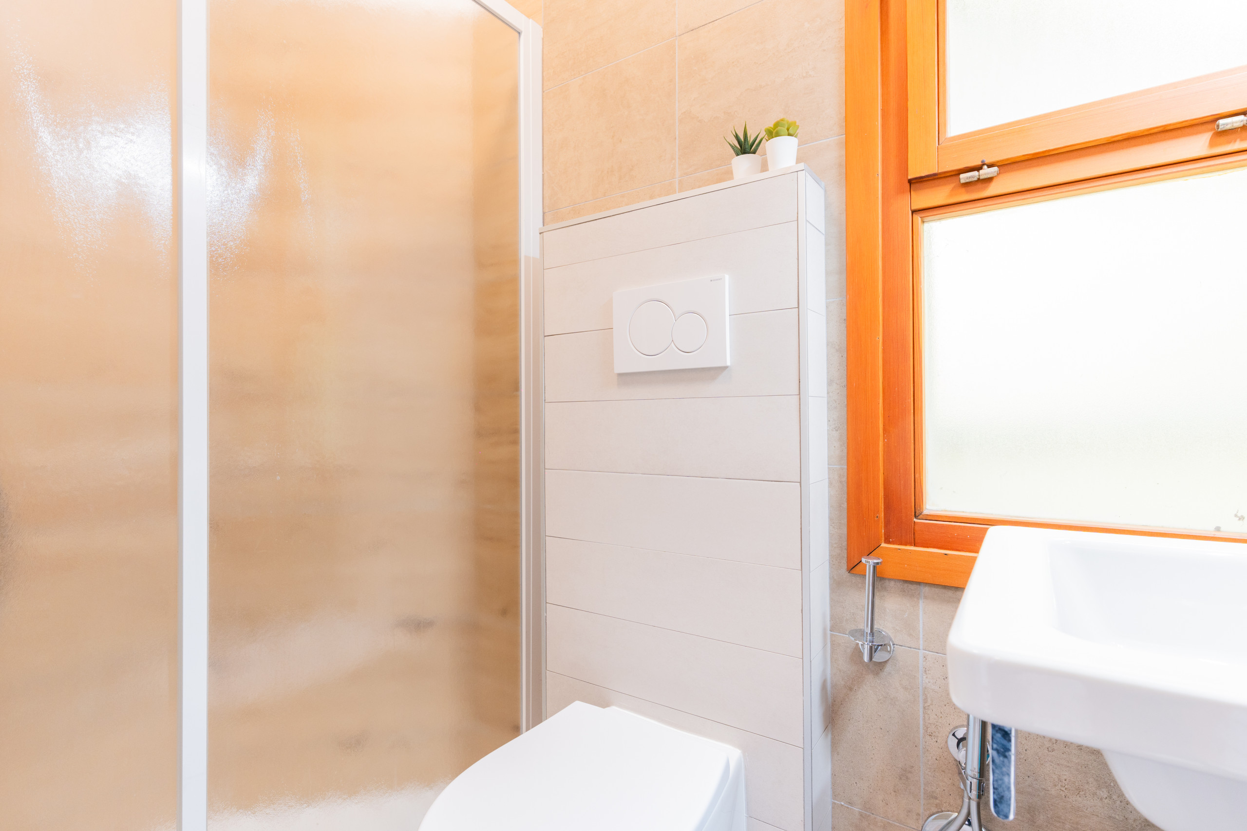 - Modern bathroom with shower cabin