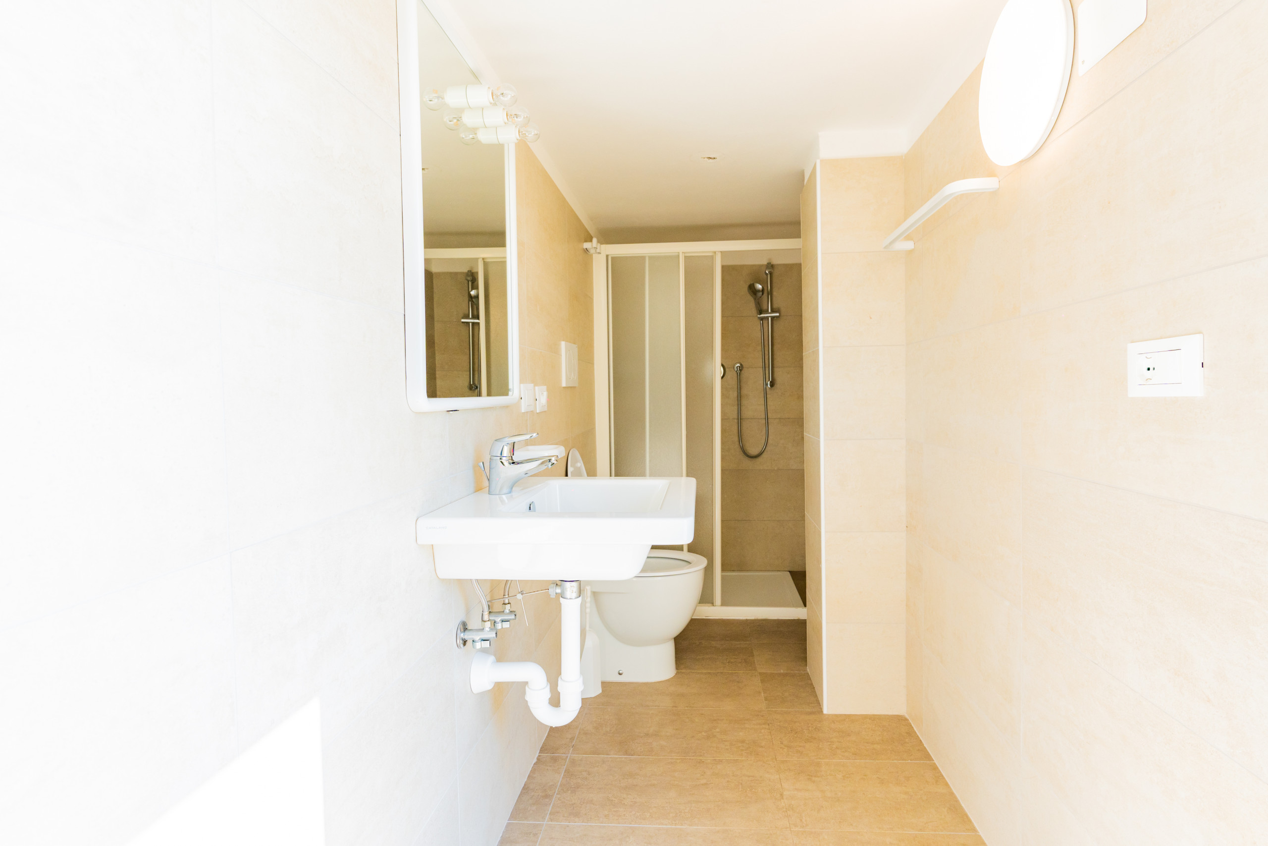 Located on the fourth floor, these cosy two-room apartments boast a spacious terrace equipped with a fireplace, perfect for outdoor dinners or moments of relaxation with a stunning side view of the sea.