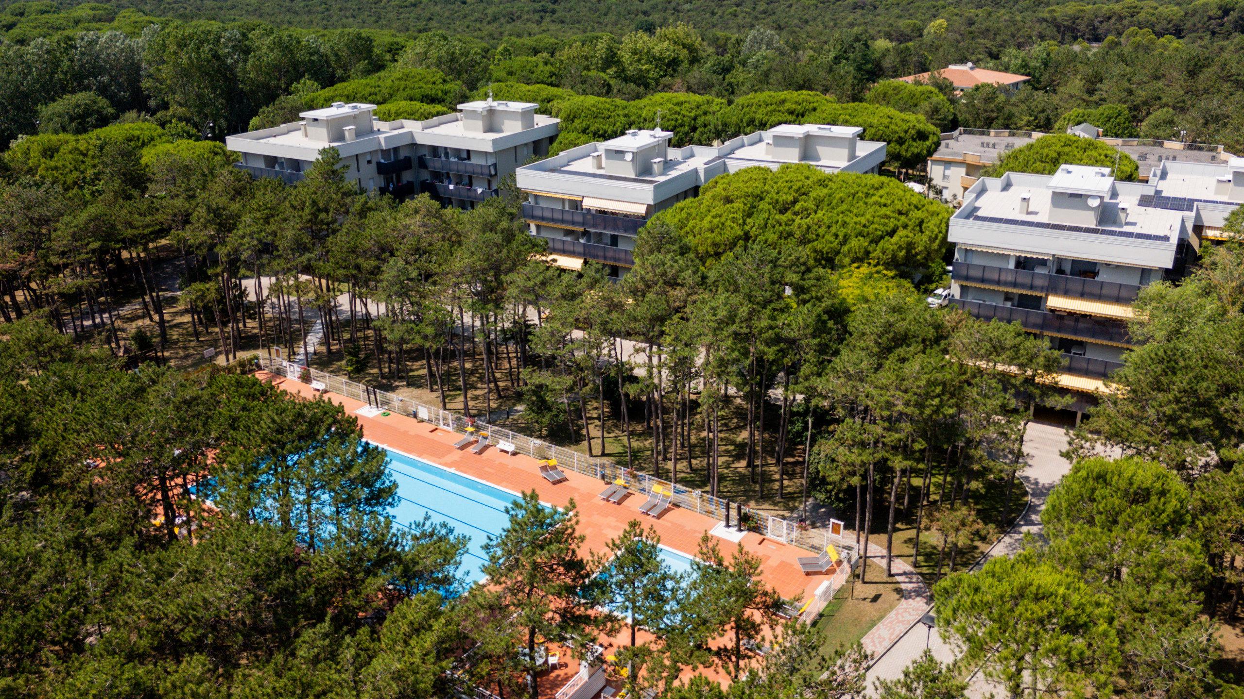 Immersed in an oasis of tranquillity and surrounded by greenery, the Tivoli Village is a welcoming residential complex with a swimming pool for adults and children, located approximately 800 metres from the sea. The location is ideal for those seeking a relaxing holiday yet close to the vibrant atmosphere of Bibione Spiaggia: just a few steps away are the Luna Park and the main street, bustling with shops, restaurants, bars, ice cream parlours and game rooms, easily accessible with a short walk of about ten minutes.
