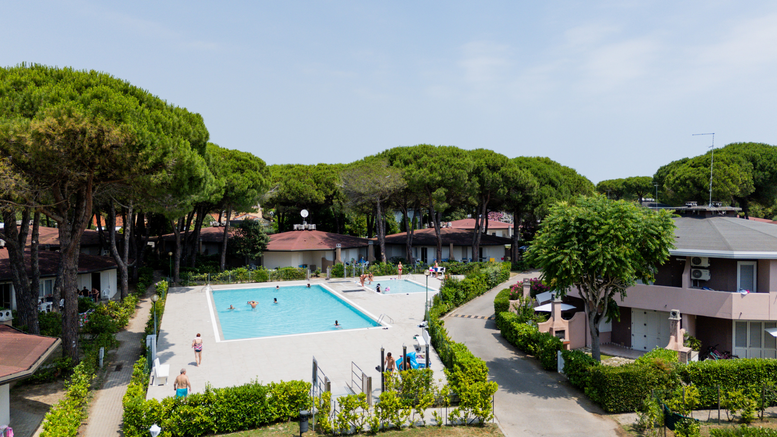 Immersed in an oasis of tranquillity and surrounded by greenery, the Tivoli Village is a welcoming residential complex with a swimming pool for adults and children, located approximately 800 metres from the sea. The location is ideal for those seeking a relaxing holiday yet close to the vibrant atmosphere of Bibione Spiaggia: just a few steps away are the Luna Park and the main street, bustling with shops, restaurants, bars, ice cream parlours and game rooms, easily accessible with a short walk of about ten minutes.