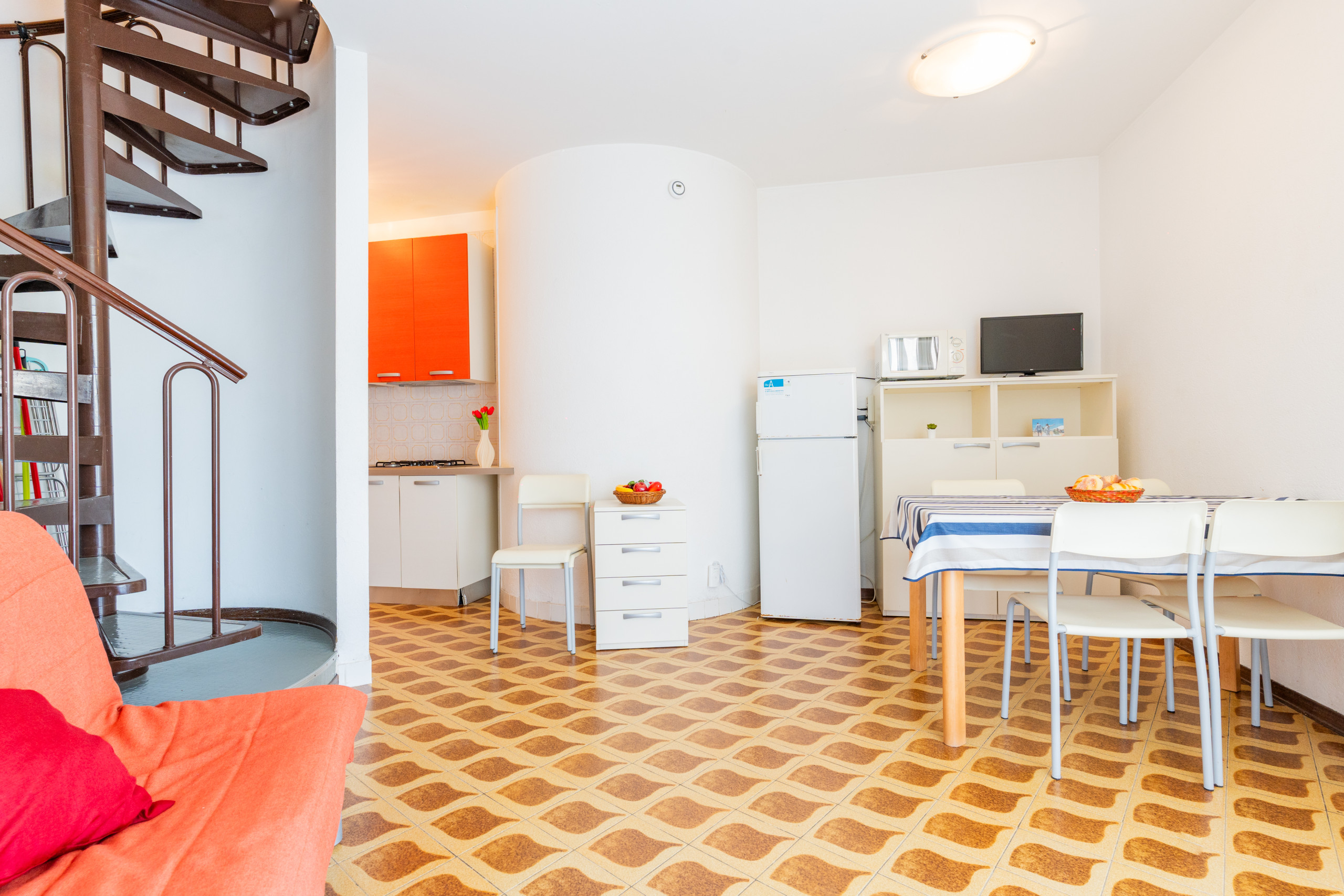 - a welcoming living room with an equipped kitchenette and a double sofa bed;