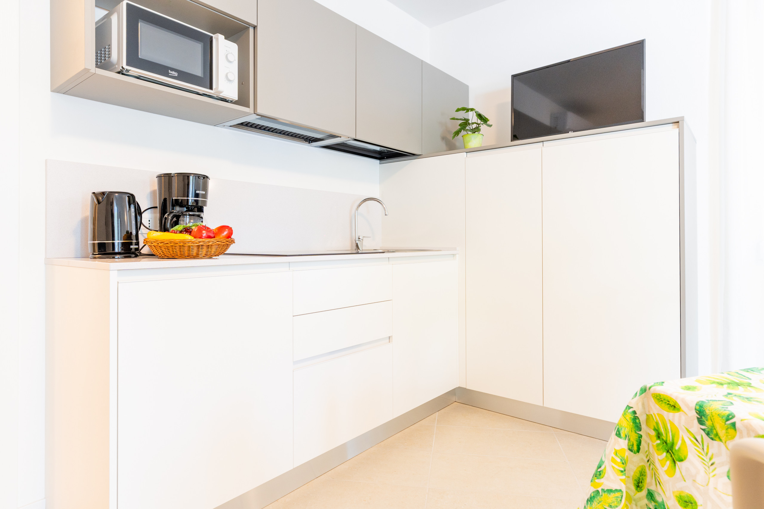The studio flats, recently refurbished and located on the ground floor, combine comfort and practicality. Each apartment features: