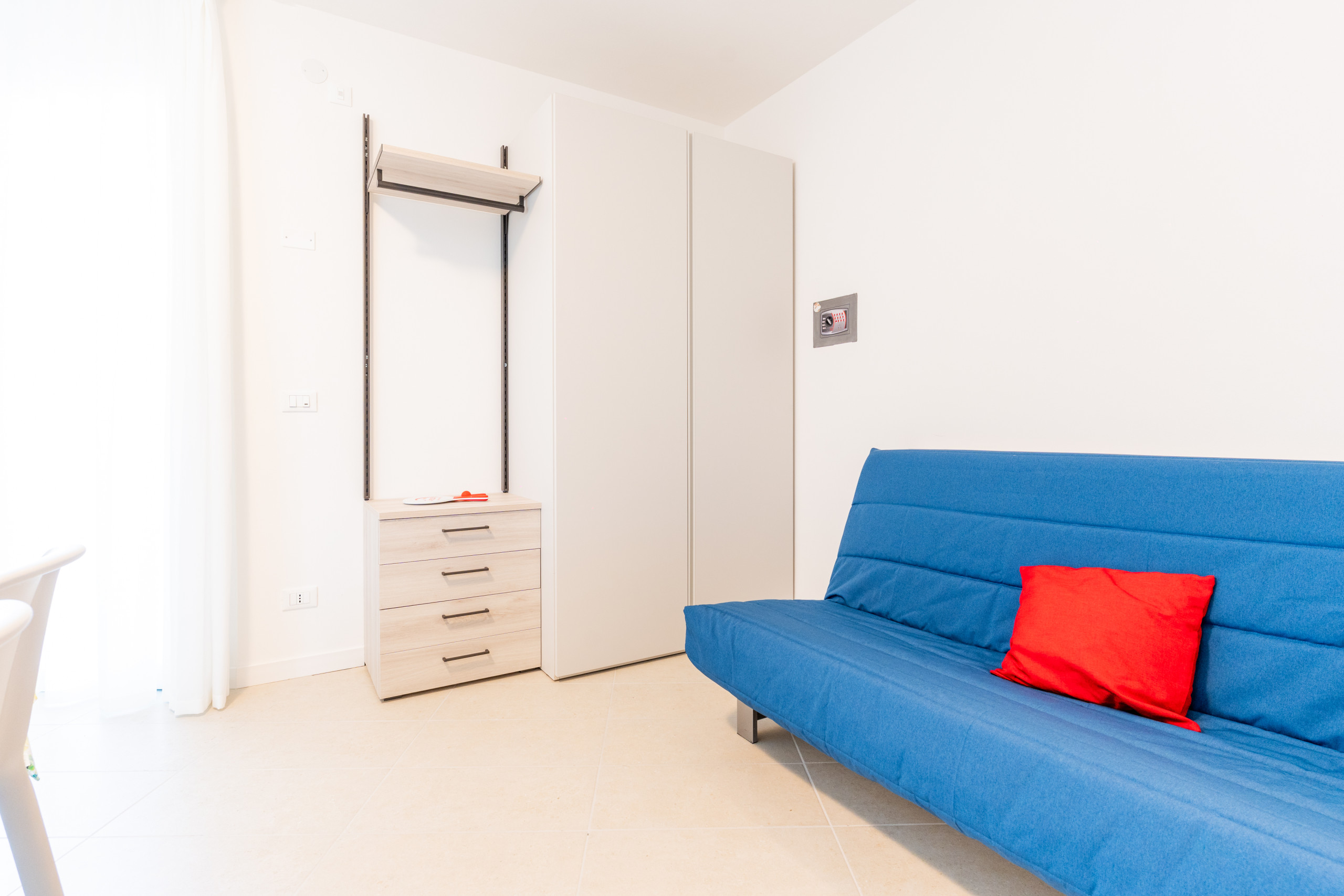 The studio apartments, located between the first and third floors, face east or west, offering splendid natural light and relaxing atmospheres. Each apartment has a private balcony, ideal for having breakfast outdoors or enjoying the sunset after a day at the sea.