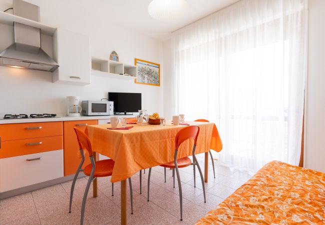 The renovated three-room apartments, located between the second and third floors, offer spacious terraces or balconies facing south or north-west, ideal for enjoying a coffee in the sun or an outdoor dinner while admiring different views of Bibione.