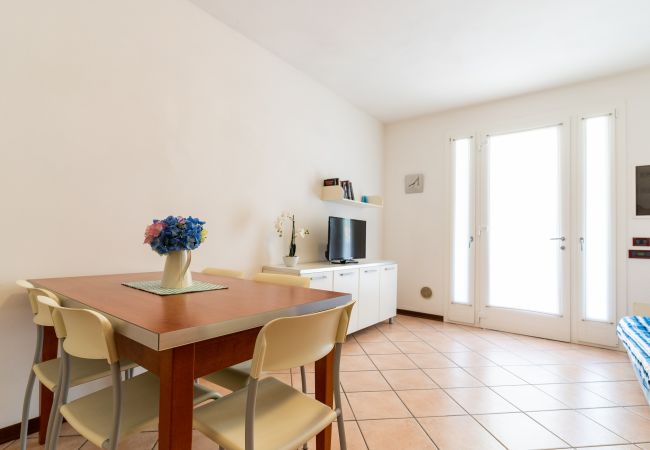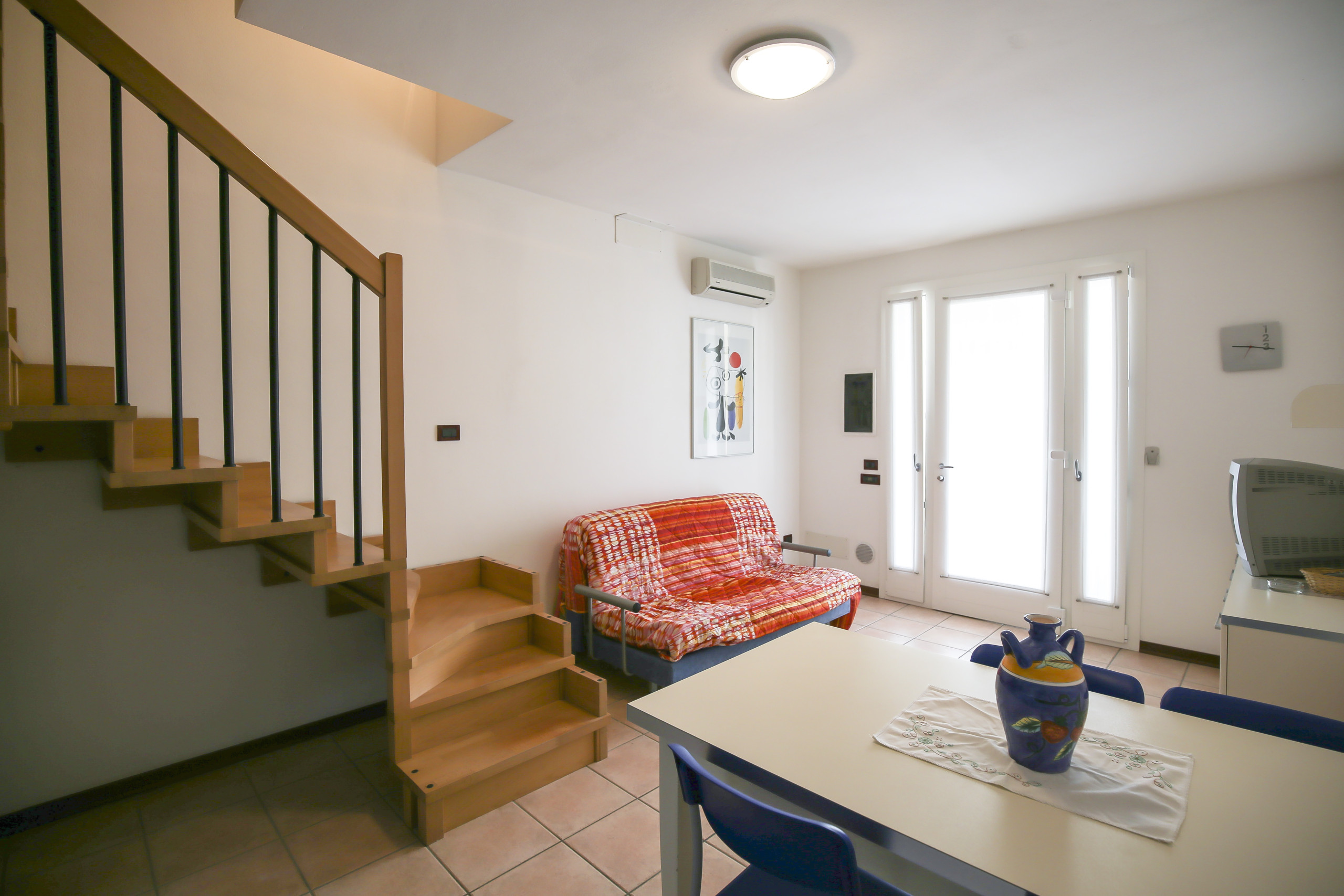 1 bedroom villa on 2 floors. Ground floor: garden, Kitchenette and double sofabed. On the first floor: 1 bathroom, bedroom with double and single bed. "La Quercia" arcade is a real meeting point the entire holiday village area of Caorle Lido Altanea: a wide square, shops, bars, restaurant and many other commercial activities overlooking the covered pedestrian gallery. A spectacular elevated and lighted swimming pool, offers a special setting to this village made of 22 shops and 84 apartments. Fee-paying beach service available (information in Lampo office in Caorle Lido Altanea).