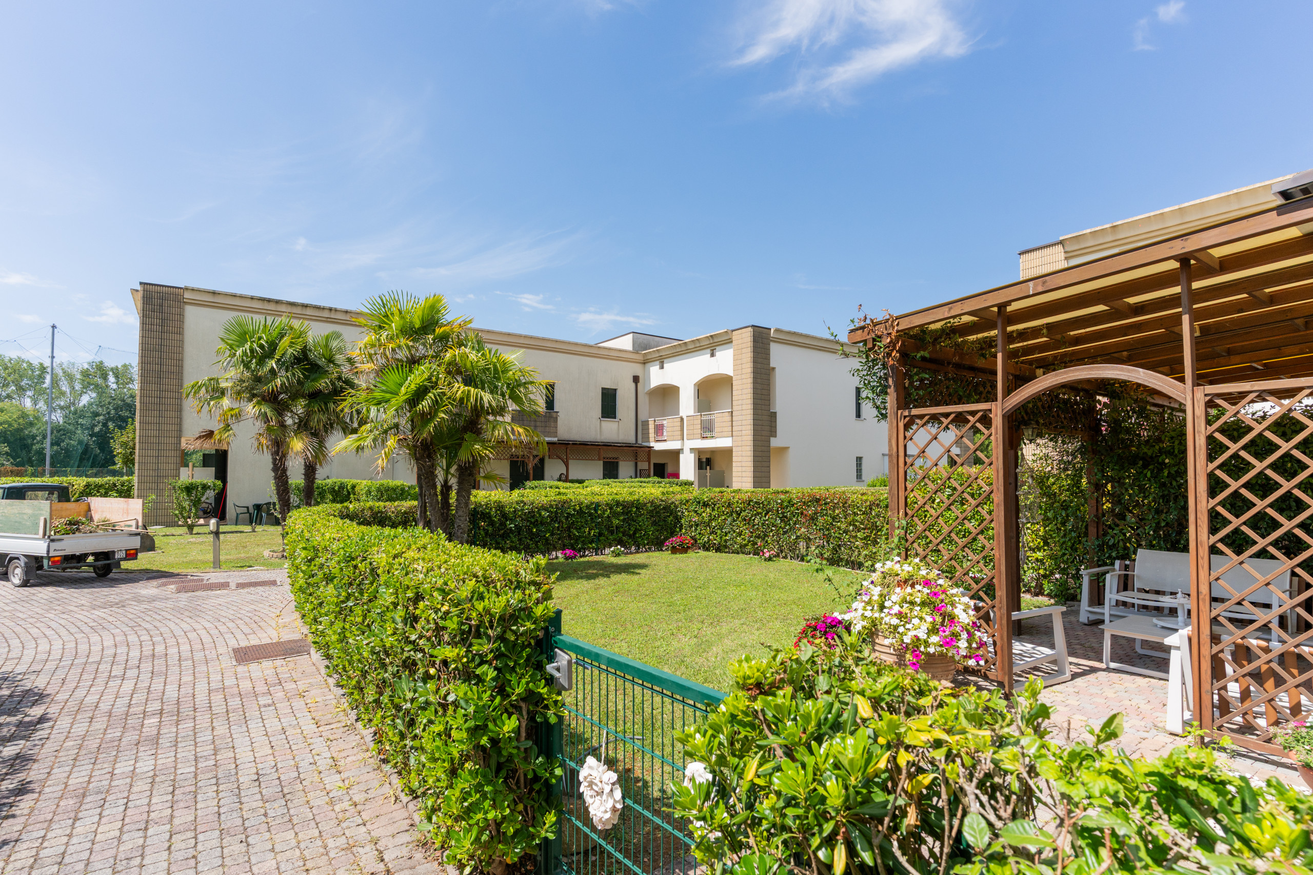 Located in the heart of a quiet residential area of the "Clock Village", just 250 metres from the beach and just over a kilometre from the historic centre of Caorle, it welcomes you with its slow and relaxed rhythm, perfect for those dreaming of a holiday immersed in nature and serenity.
