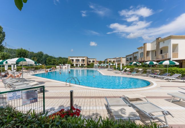 The village consists of 70 residential units, all arranged on two floors and organised in a horseshoe shape around the swimming pool, which includes areas for adults and children. Uncovered and garage parking spaces are available, free Wi-Fi access is available in common areas, offering comfort and connectivity during the stay.