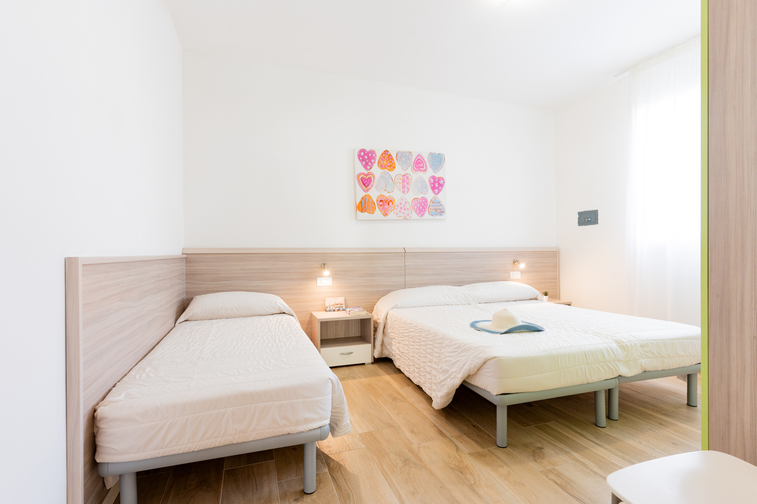 • a spacious bedroom with double bed and single bed;