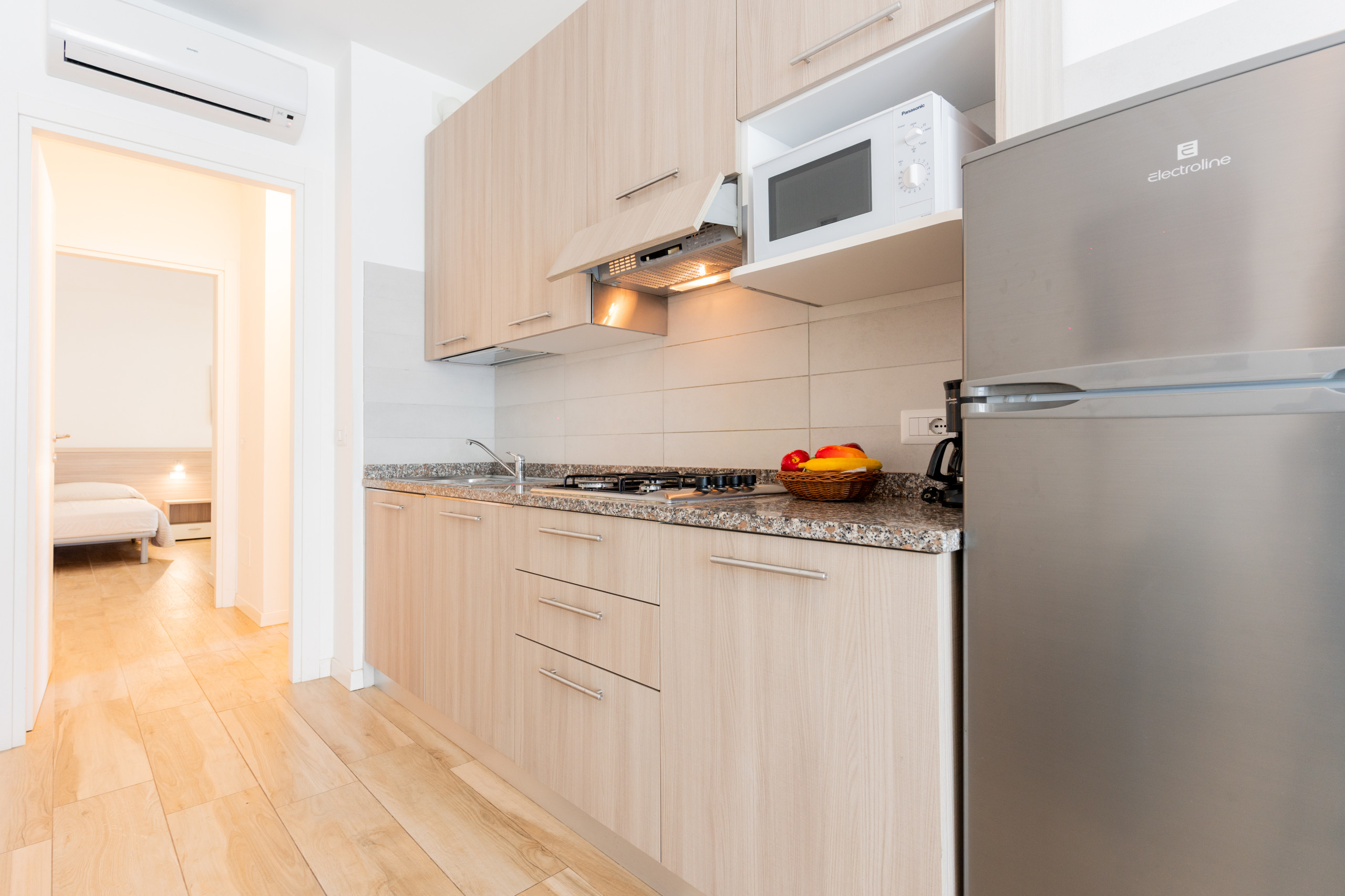 All apartments are equipped with air conditioning, satellite TV, safe, microwave, refrigerator with freezer and everything needed for cooking. Included in the stay: reserved parking space and Wi-Fi in common areas.