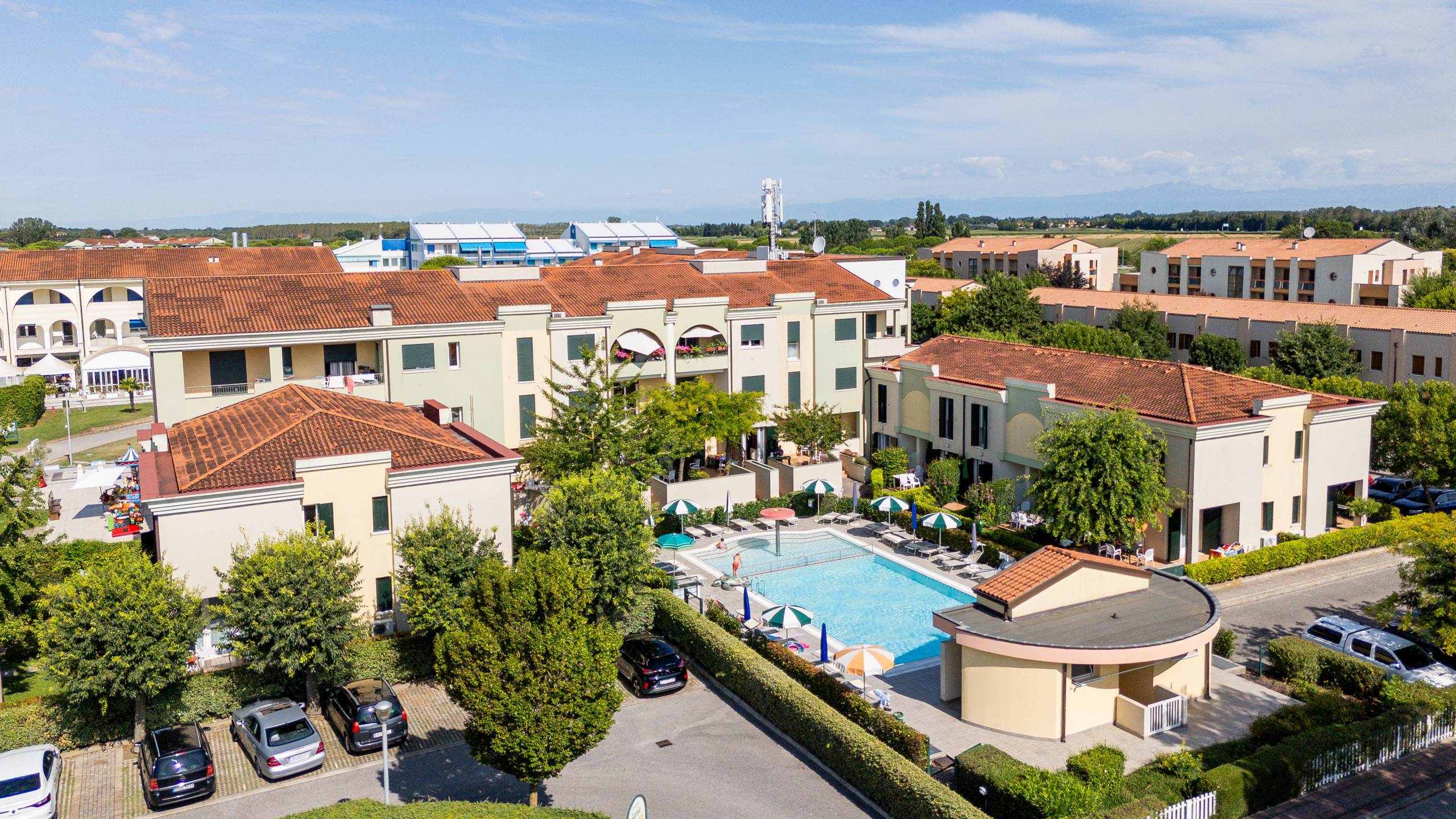 Located in the heart of a quiet residential area of the "Clock Village", just 250 metres from the beach and just over a kilometre from the historic centre of Caorle, it welcomes you with its slow and relaxed rhythm, perfect for those dreaming of a holiday immersed in nature and serenity.