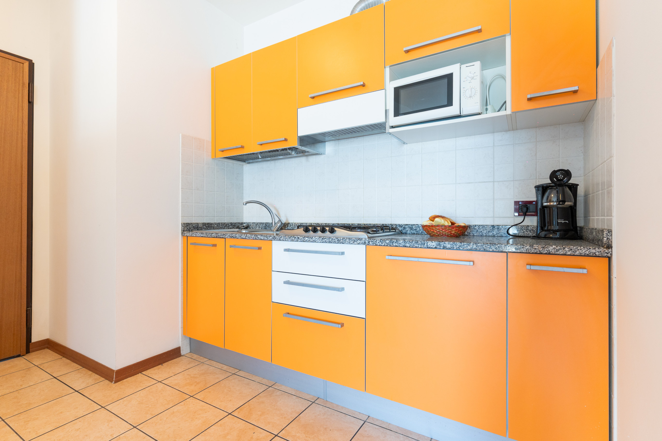 • bright living room with equipped kitchenette, dining table, French sofa bed and access to terrace or balcony;